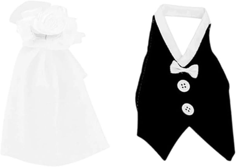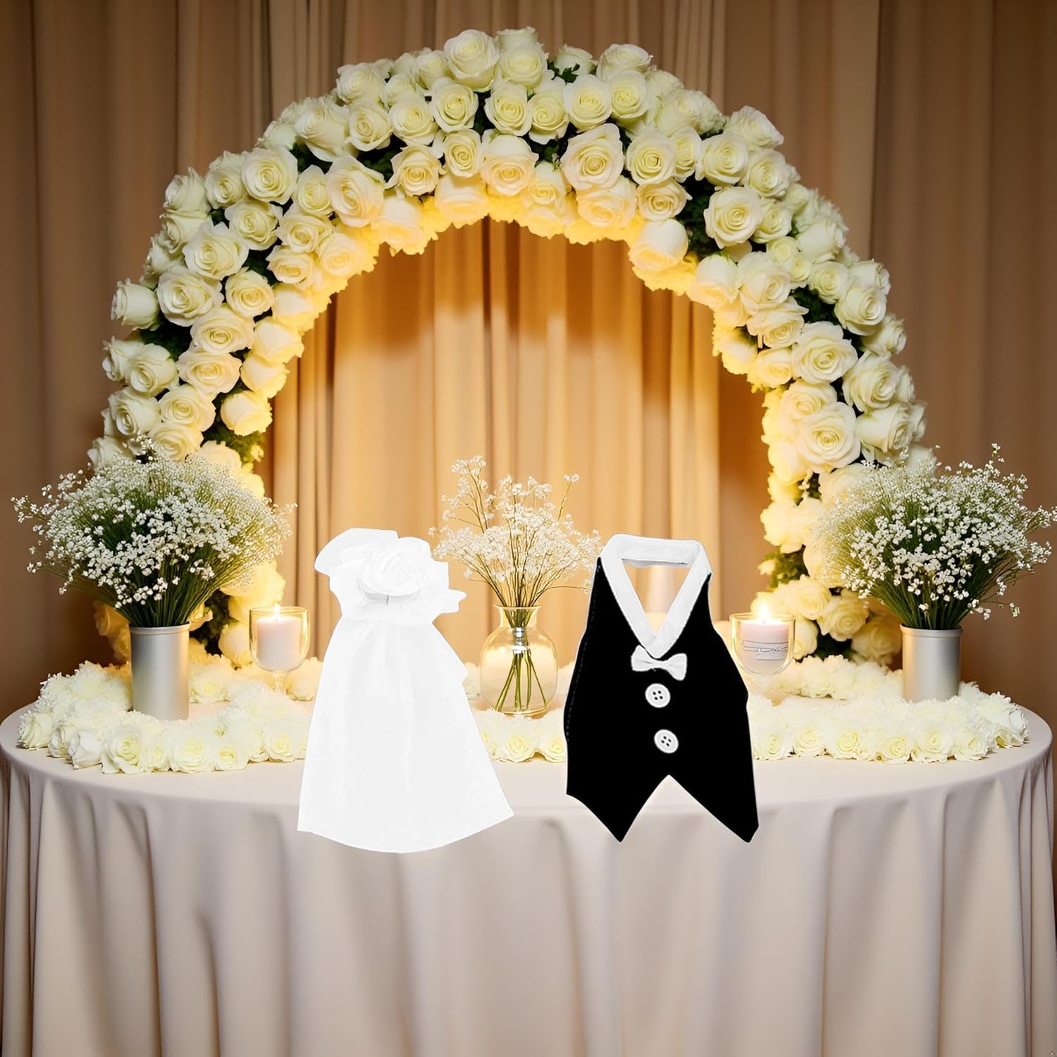 - DECORATIVE DESIGN: Features a white bridal dress cover and formal groom attire cover that slip easily over standard wine bottles