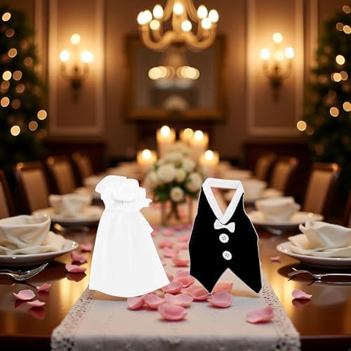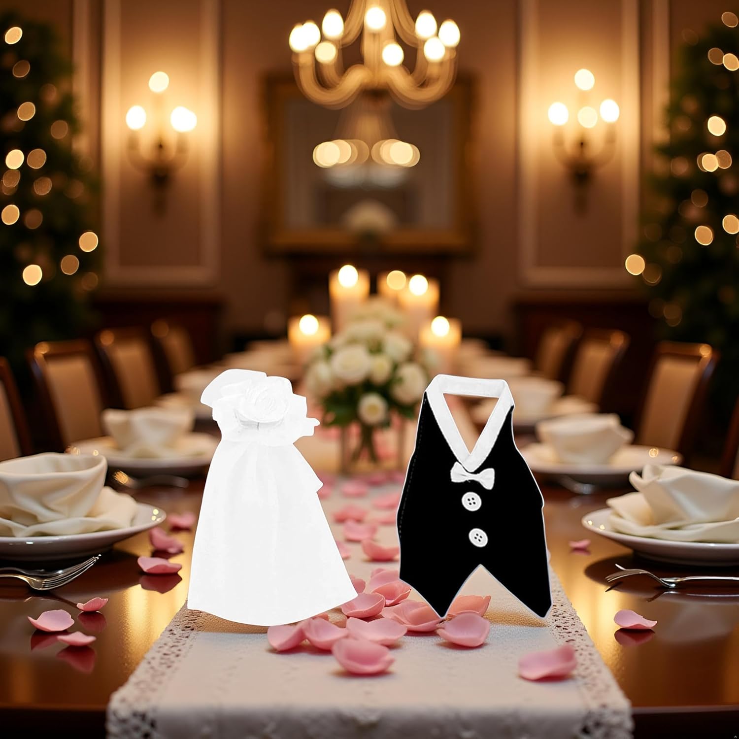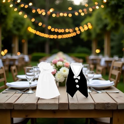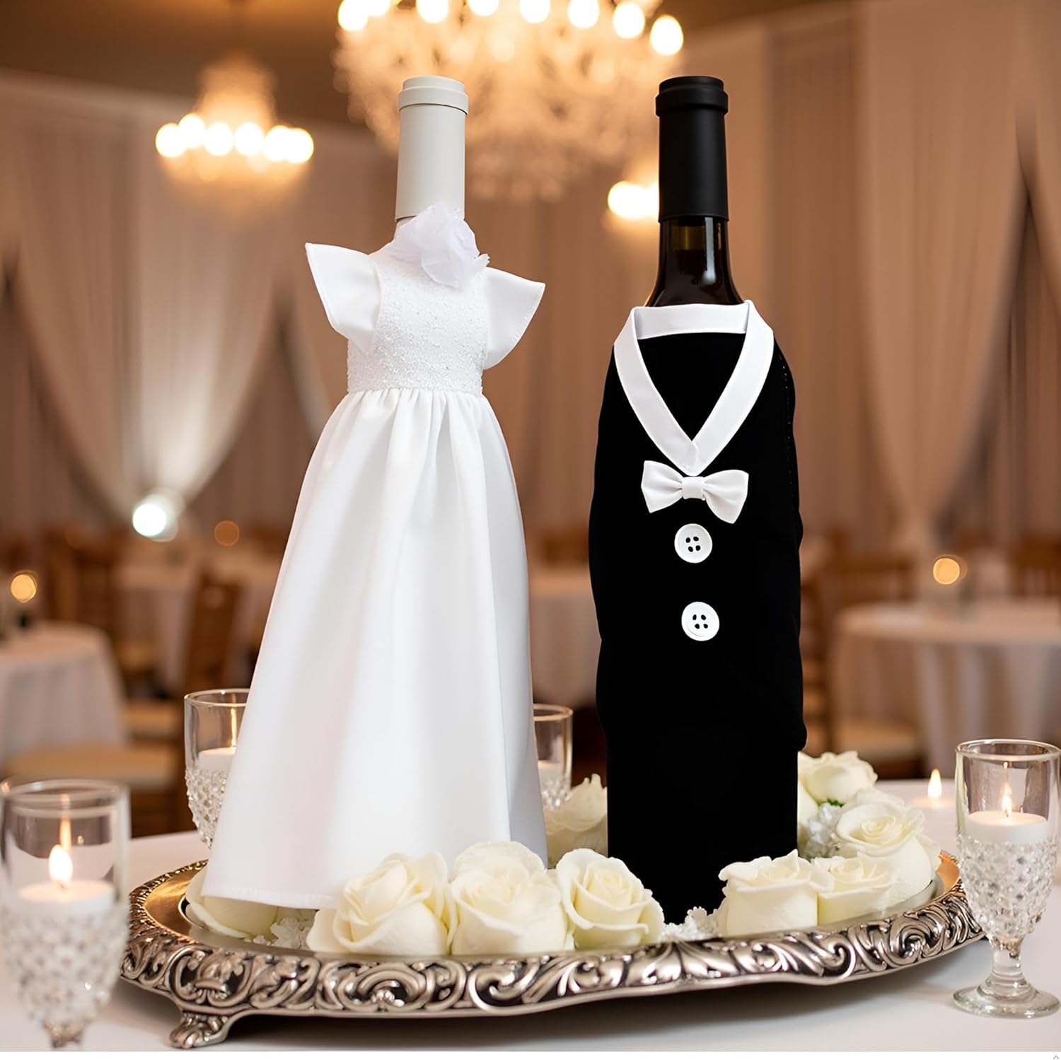 - PERFECT WEDDING DECOR: Elegant wine bottle covers designed as bride and groom outfits, for wedding table centerpieces and reception decorations