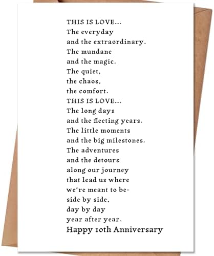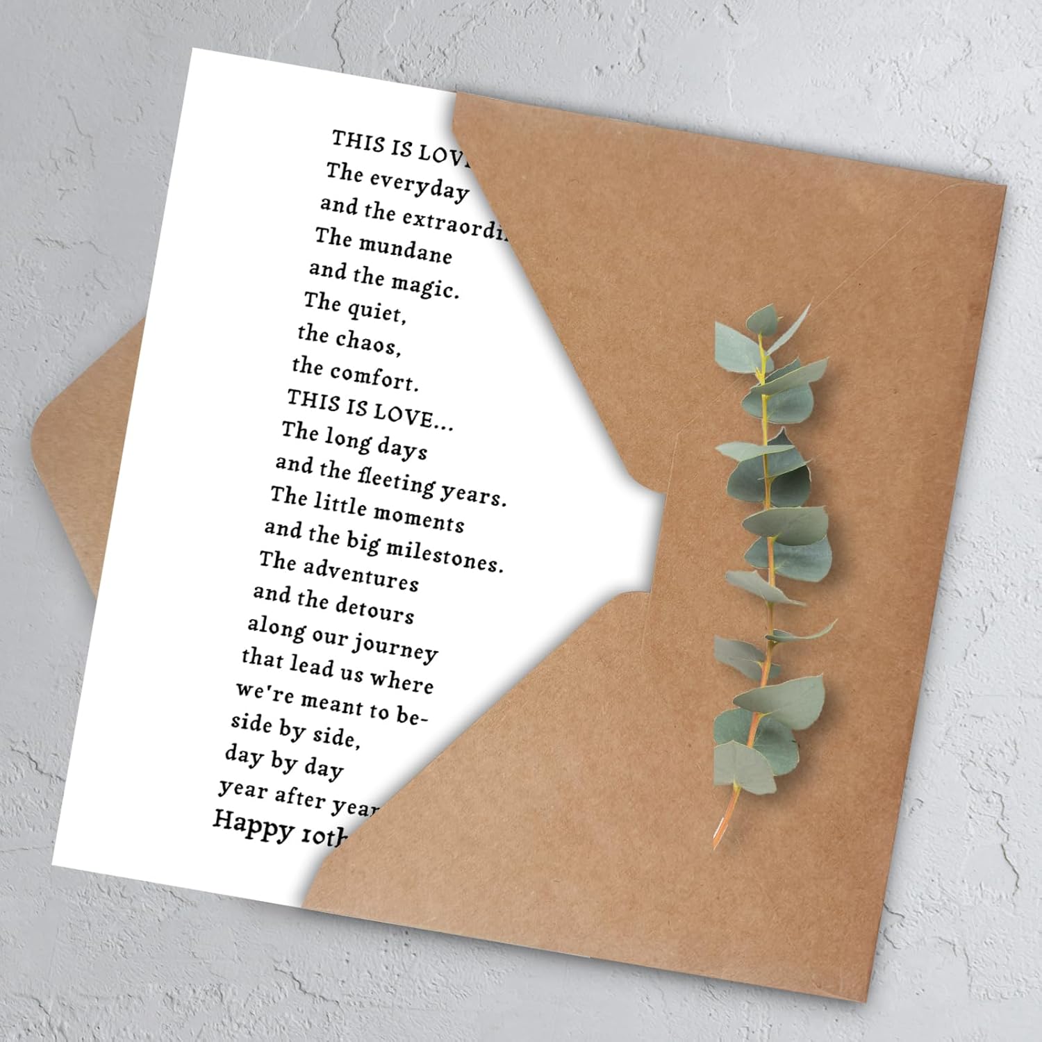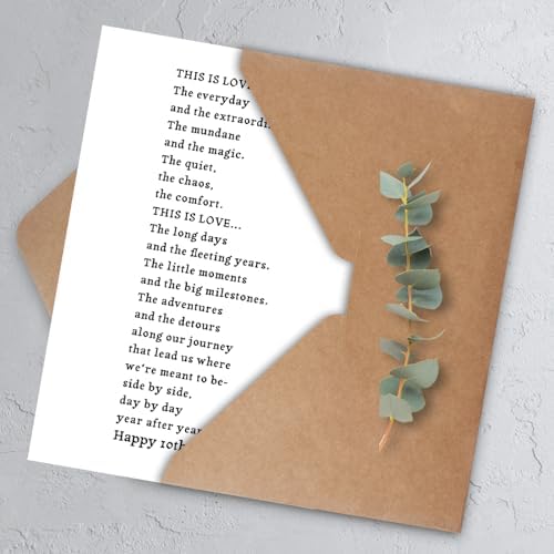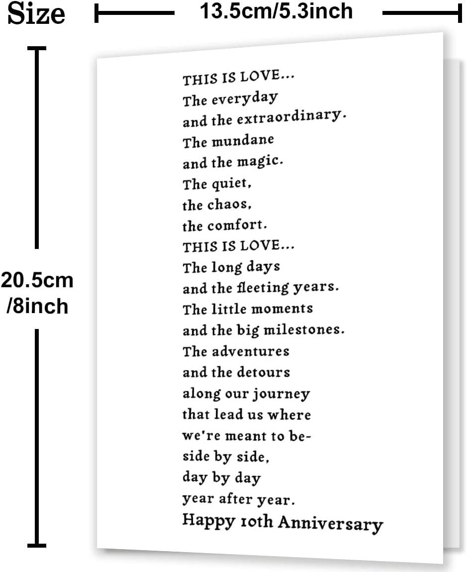 - Ten Year Anniversary Gifts: The card measures 8 x 5.3 inches and is printed on 350gsm eco-friendly recycled linen textured cardstock. Each card comes with a beautifully crafted envelope.