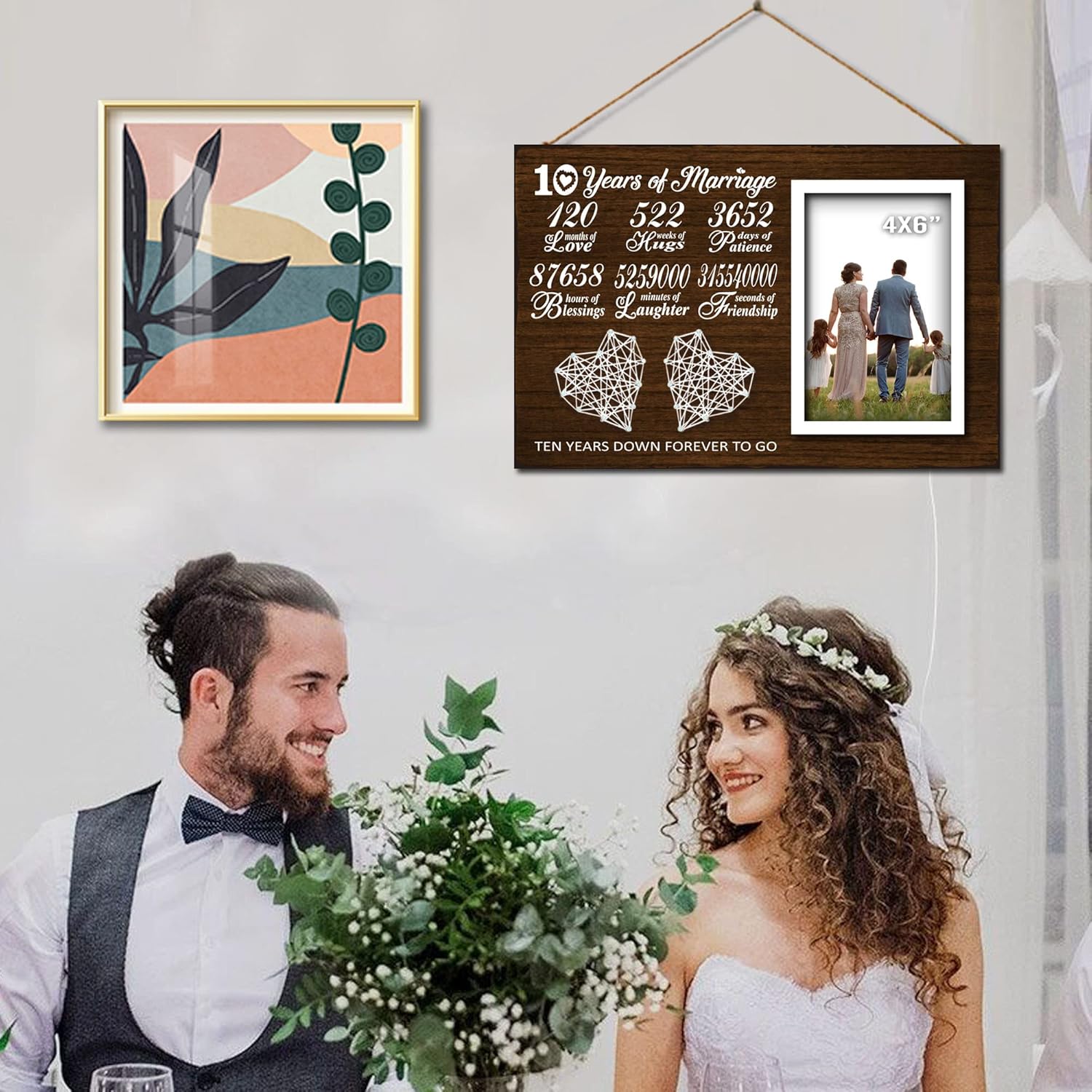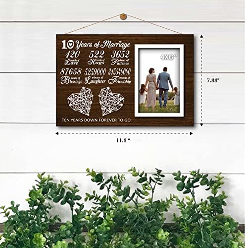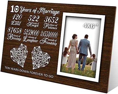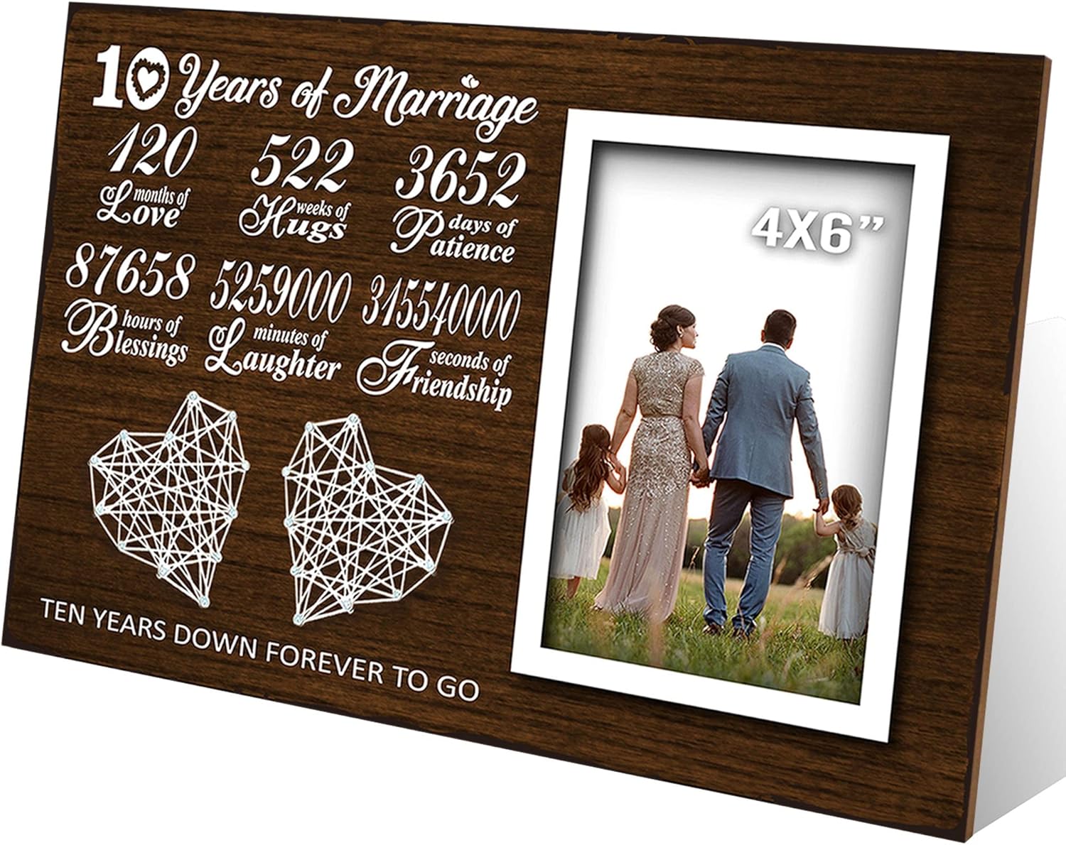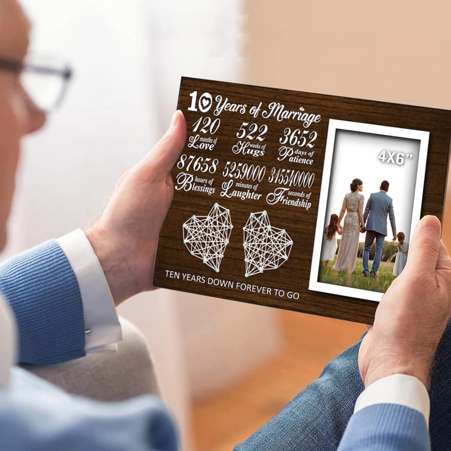 10 Year Anniversary for Him Her – 10th Year Wedding Marriage Husband and Wife Picture Frame 4×6 Inches – 120 Months Couple Bedroom Decor with Photo