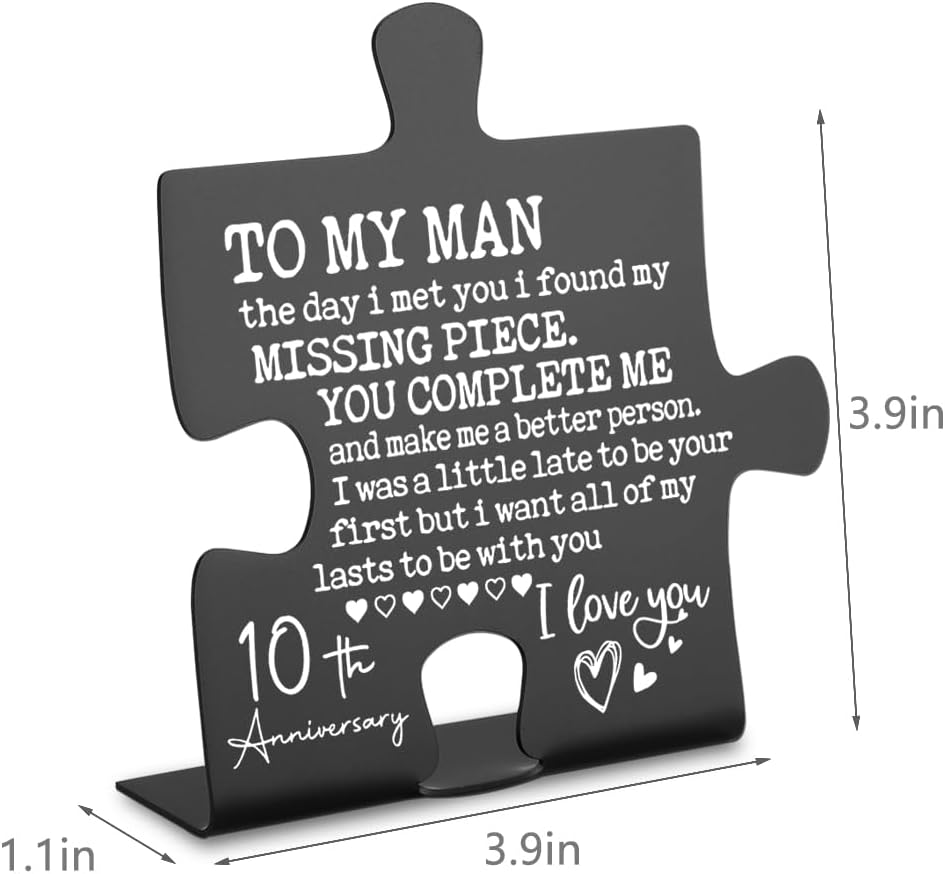 - 【MEANINGFUL GIFT】Designed in puzzle style, 10th Anniversary Plaques Gifts Give for Man Husband gifts, as the most precious and special gifts.