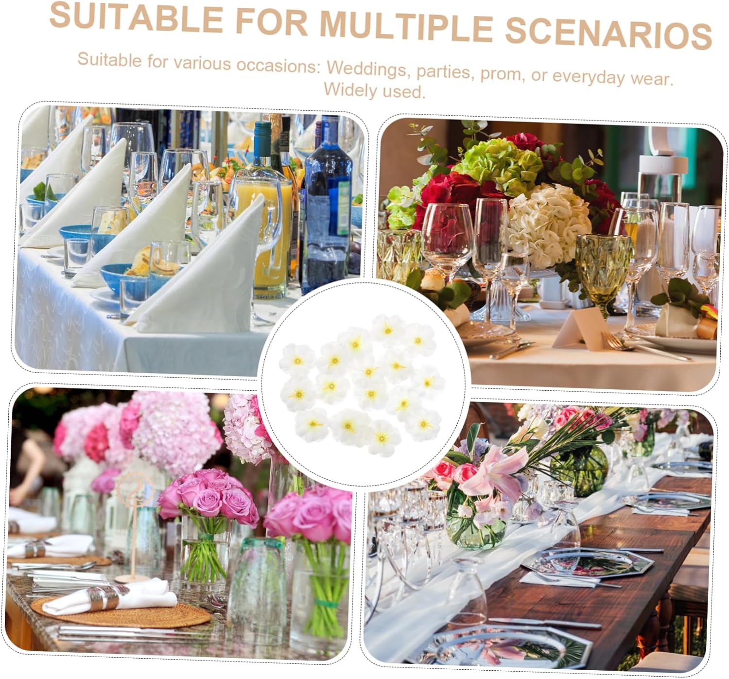• Fake flower heads:diy small silk fake flower can be used in many occasions, wedding, tea party decoration or any party,flower heads decoration