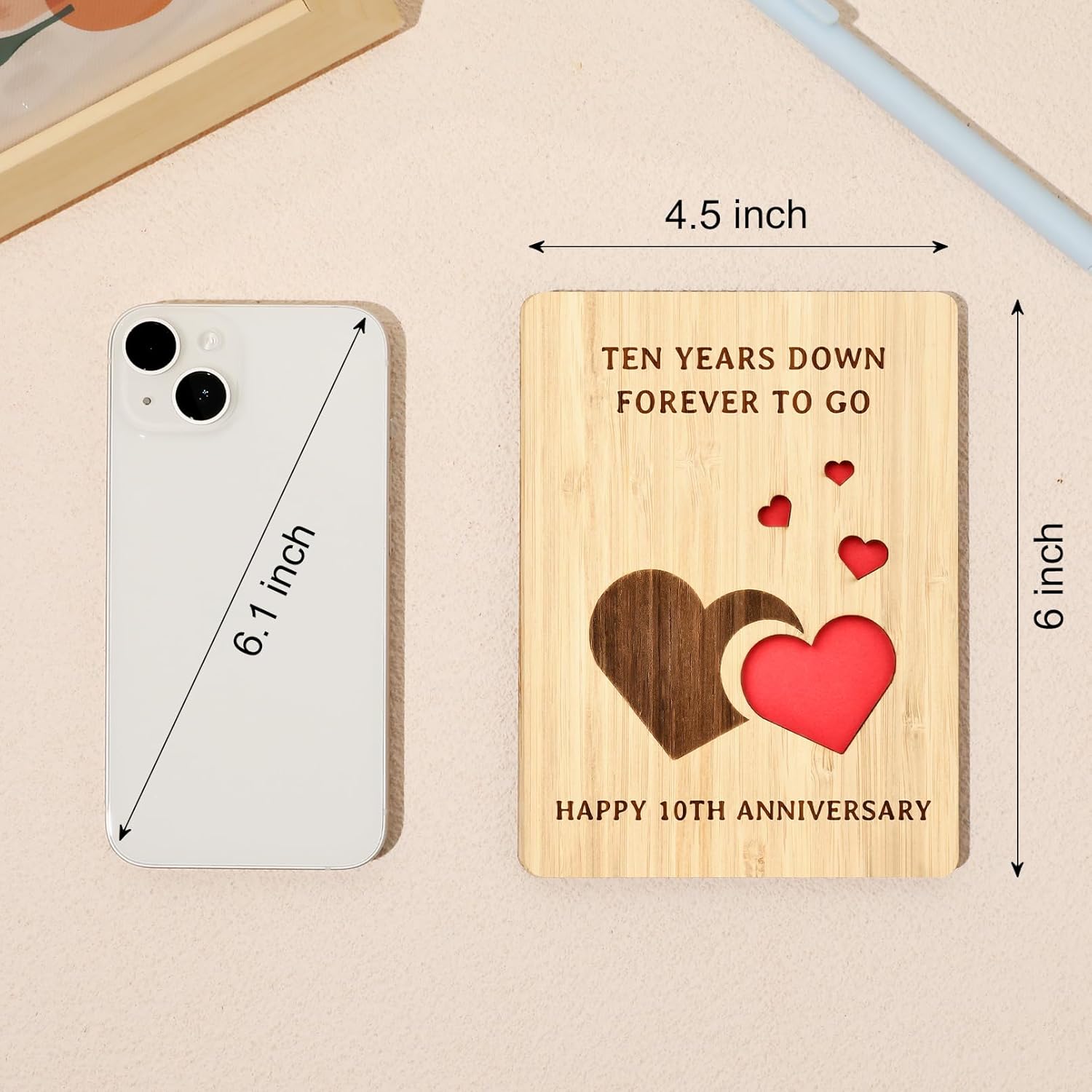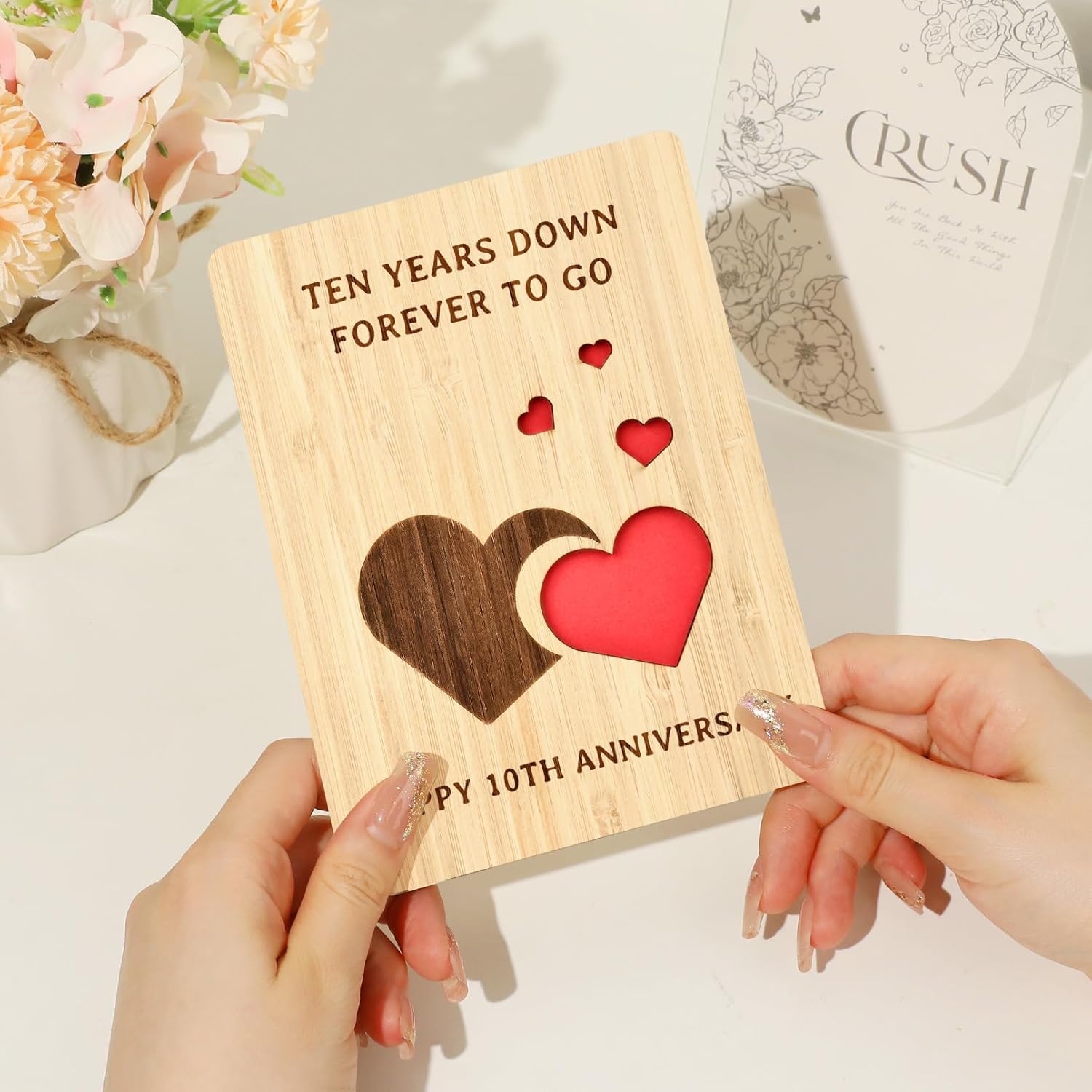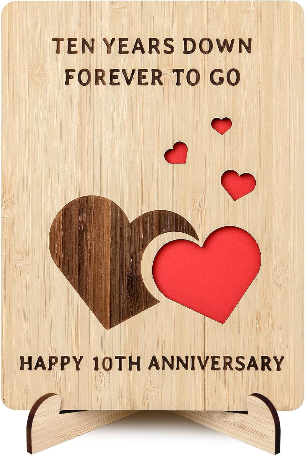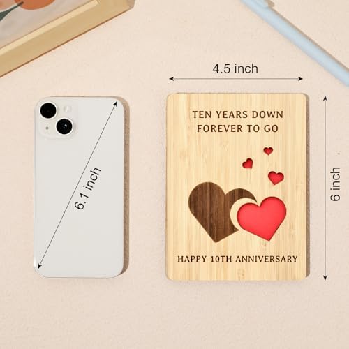 - 10th Anniversary Card Lasting Forever – The 10th Anniversary card made of natural bamboo with smoothly polished, ensures that the card is tough, and resistant to cracking. The unique heart carving, and the natural wood grain makes it a truly special 10th anniversary gift that would last forever long