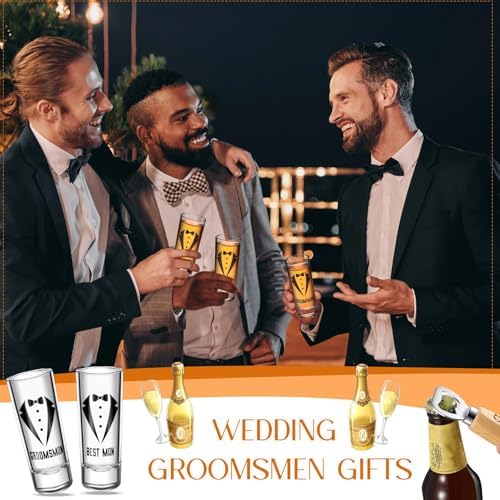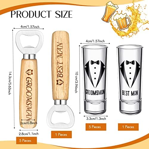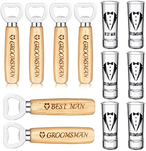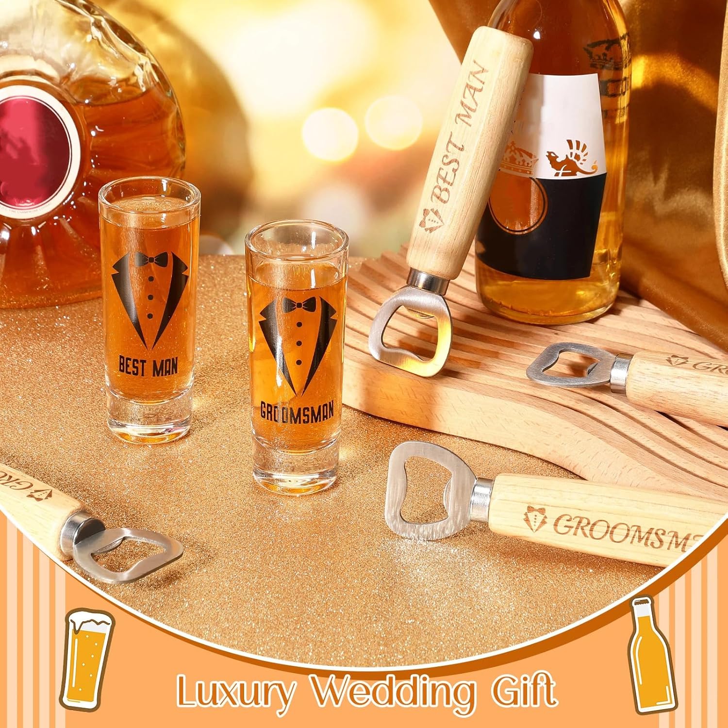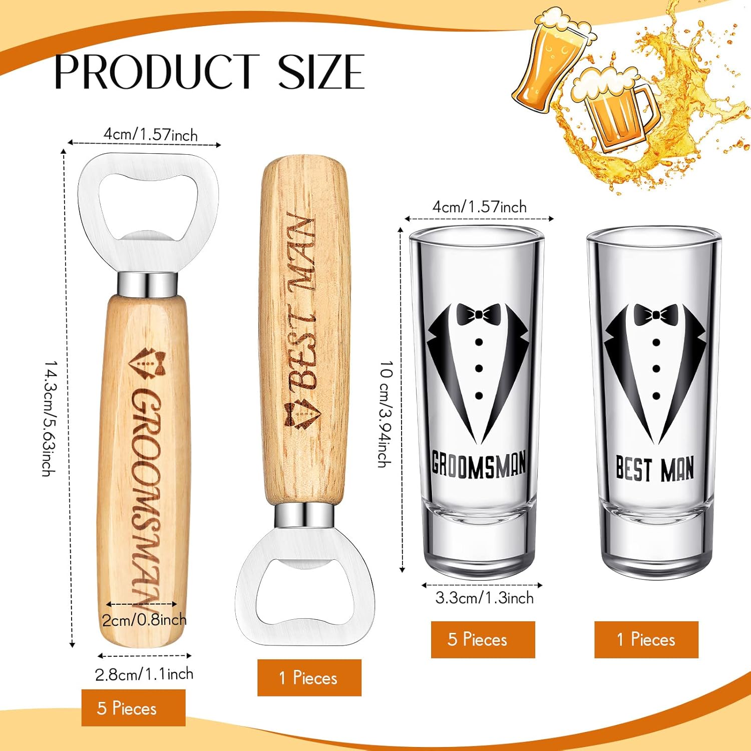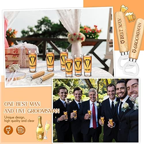 - Package Content: you will receive 6 pieces of wedding shot glasses and 6 pieces of wooden bottle openers, printed with words [Best Man] and [Groomsman], sufficient to serve as groomsmen gifts for your friends and groomsmen