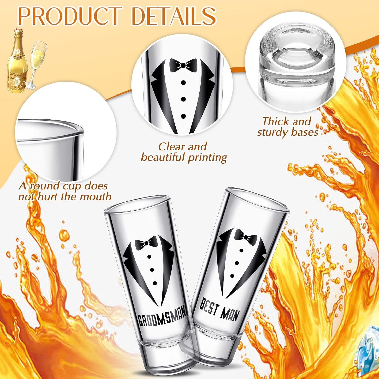 - Wide Application: grooms shot glasses are ideal additions for engagement celebrations and wedding days, which add a splash of color to groomsmen announcement, bachelor party, engagement celebration, and wedding day