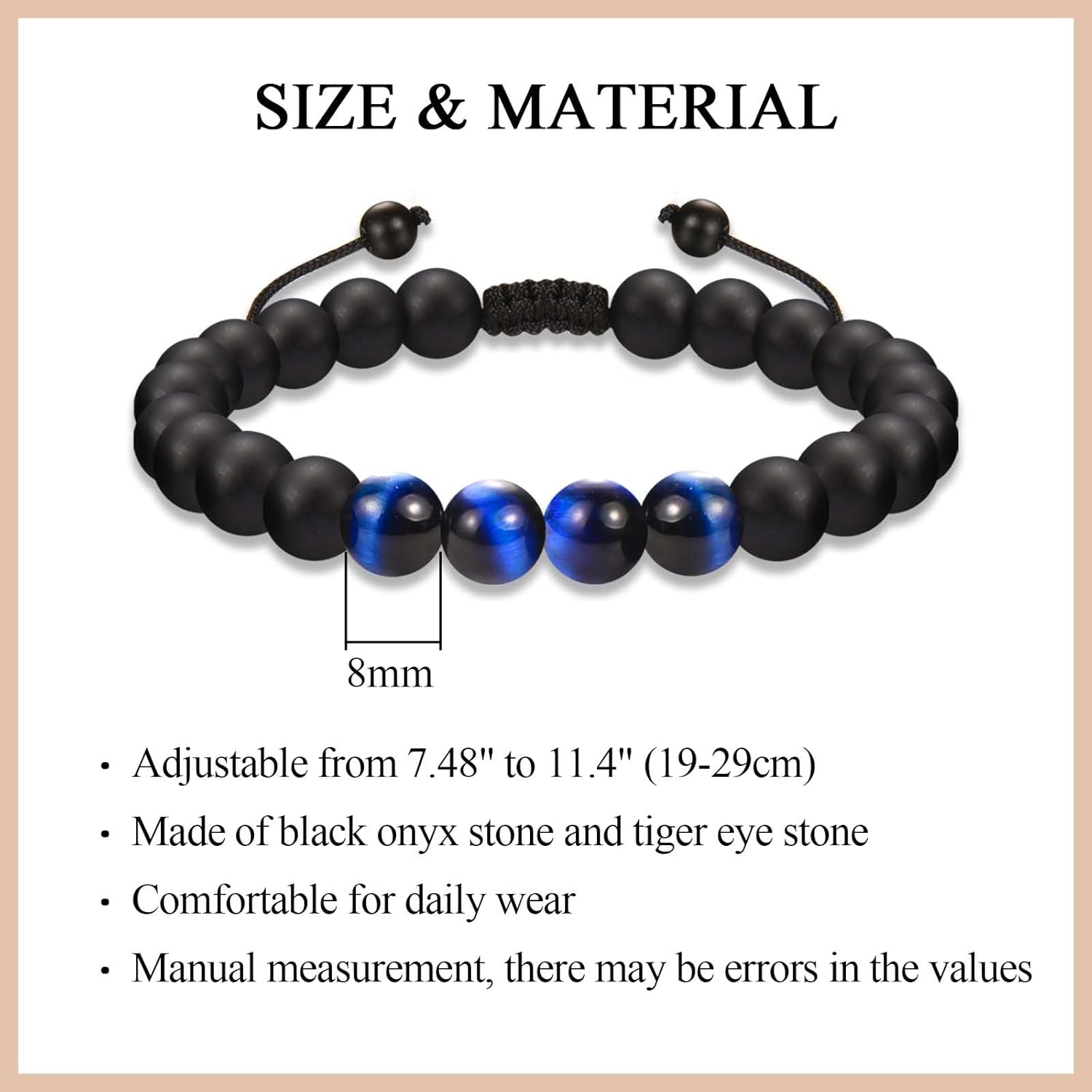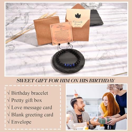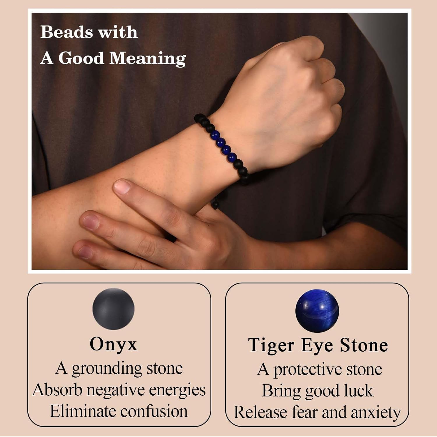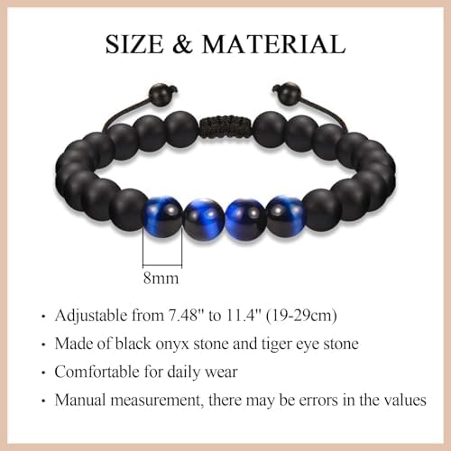 - Material: This birthday bracelet is made of high-quality 8MM black onyx stone and blue tiger eye stone. These stones can absorb negative energies, bring good luck, release fear and anxiety. The most popular fashion handmade products nowadays
