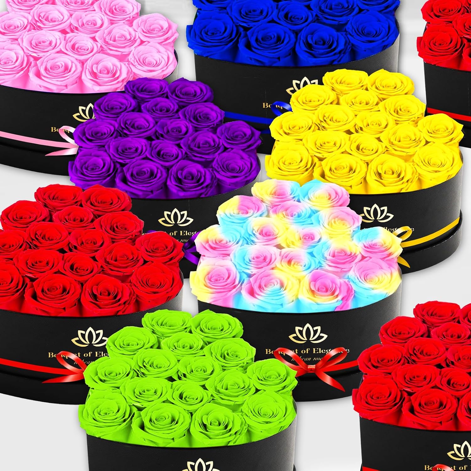 - 𝐕𝐞𝐫𝐬𝐚𝐭𝐢𝐥𝐞 𝐂𝐨𝐥𝐨𝐫𝐬 & 𝐀𝐫𝐫𝐚𝐧𝐠𝐞𝐦𝐞𝐧𝐭𝐬:Choose from a variety of roses in a box sizes and elegant colors like Red, Blue, Pink, Green, and more to suit any occasion or indoor style.