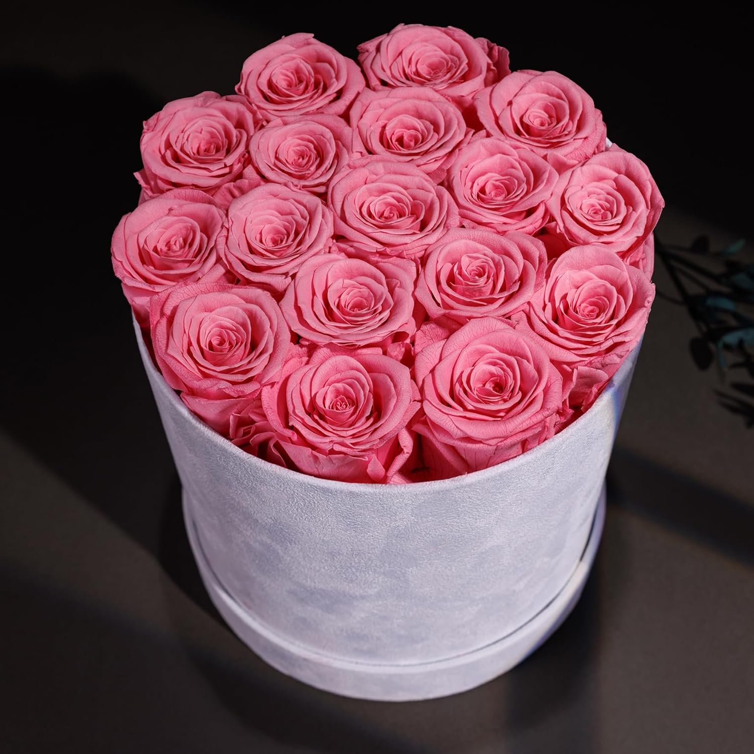 17 Flowers in a Luxury Suede Box, Birthday Gifts for Women, Preserved Flowers, Mothers Day Roses Gift for Mom, Light Pink