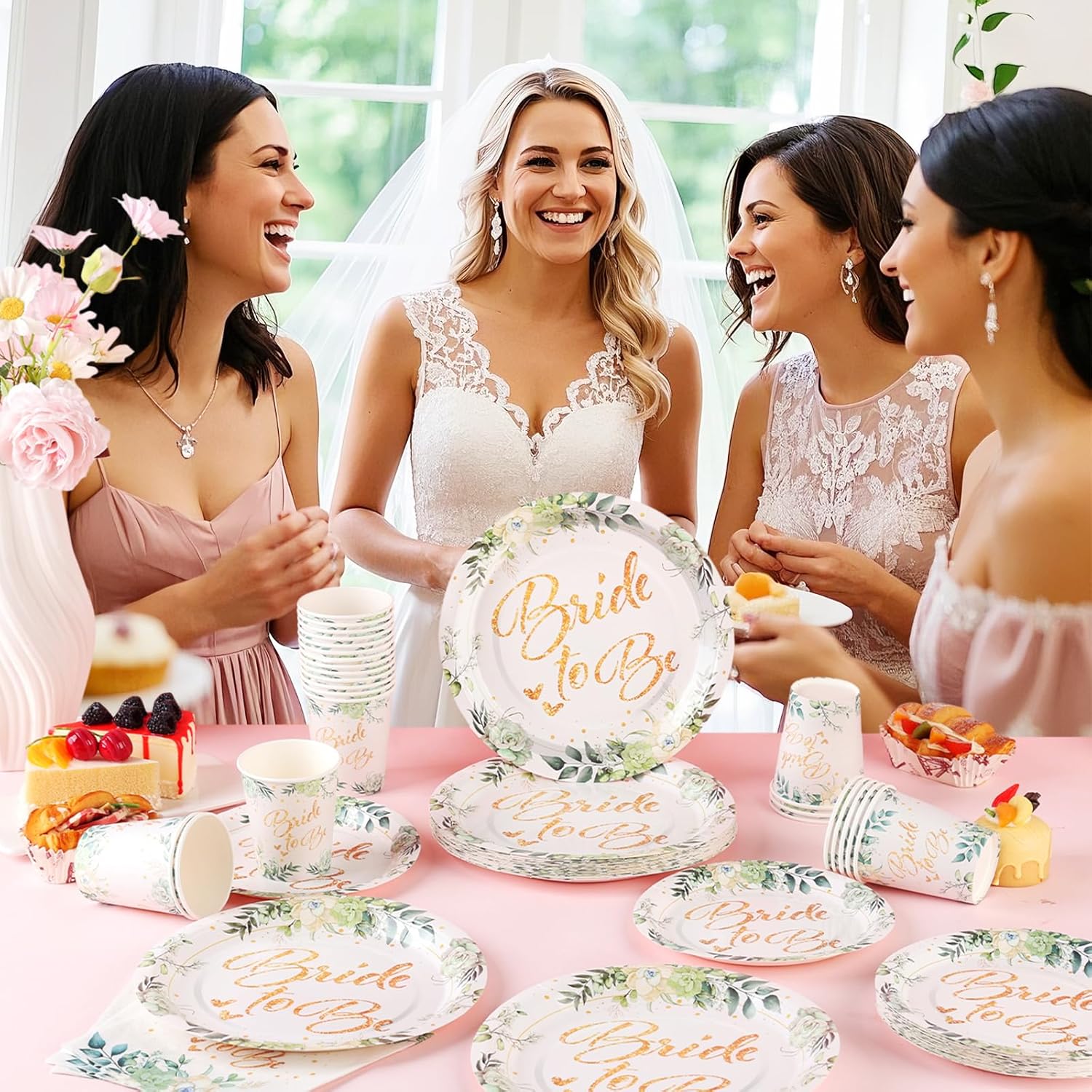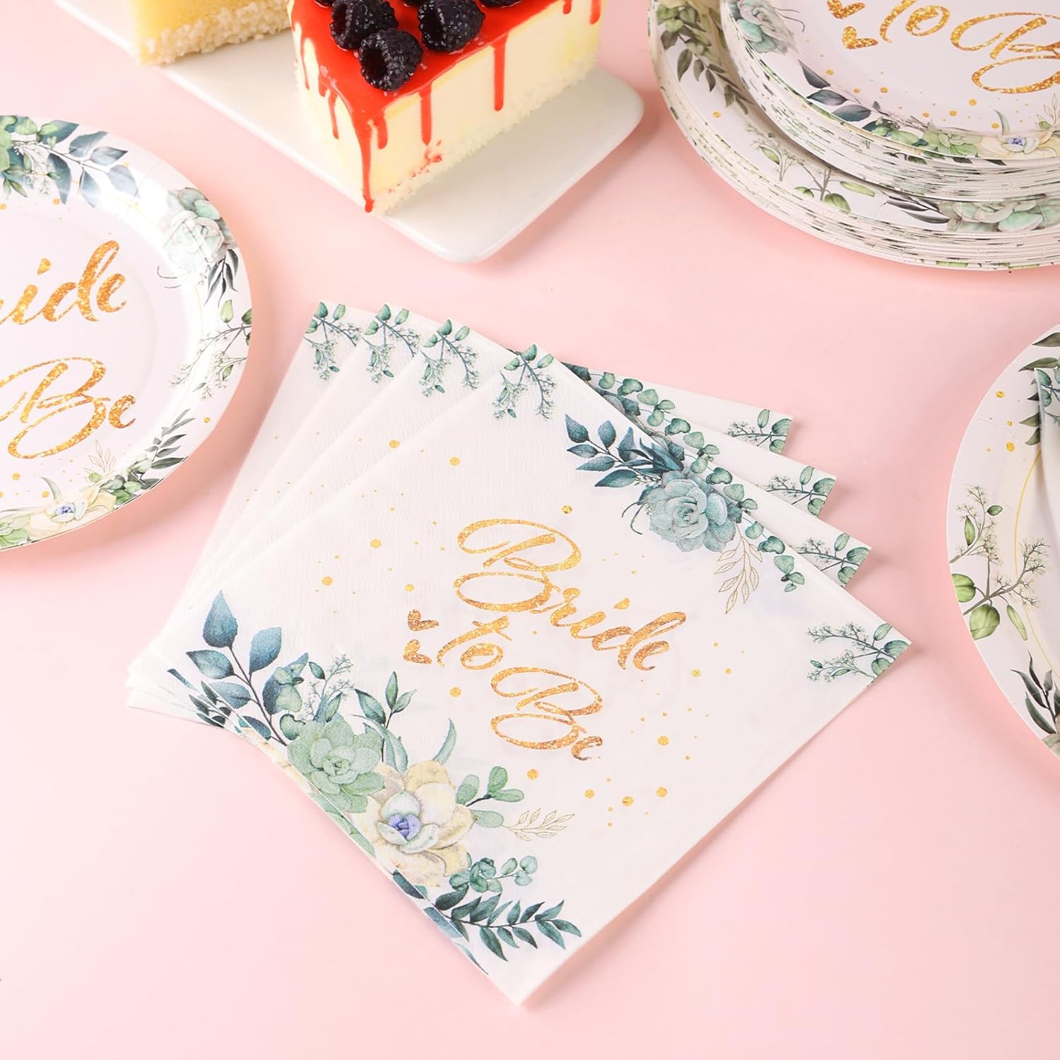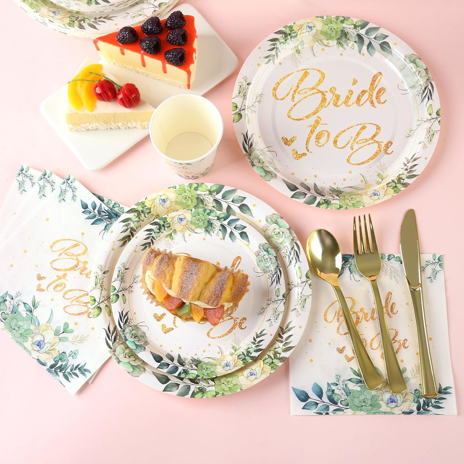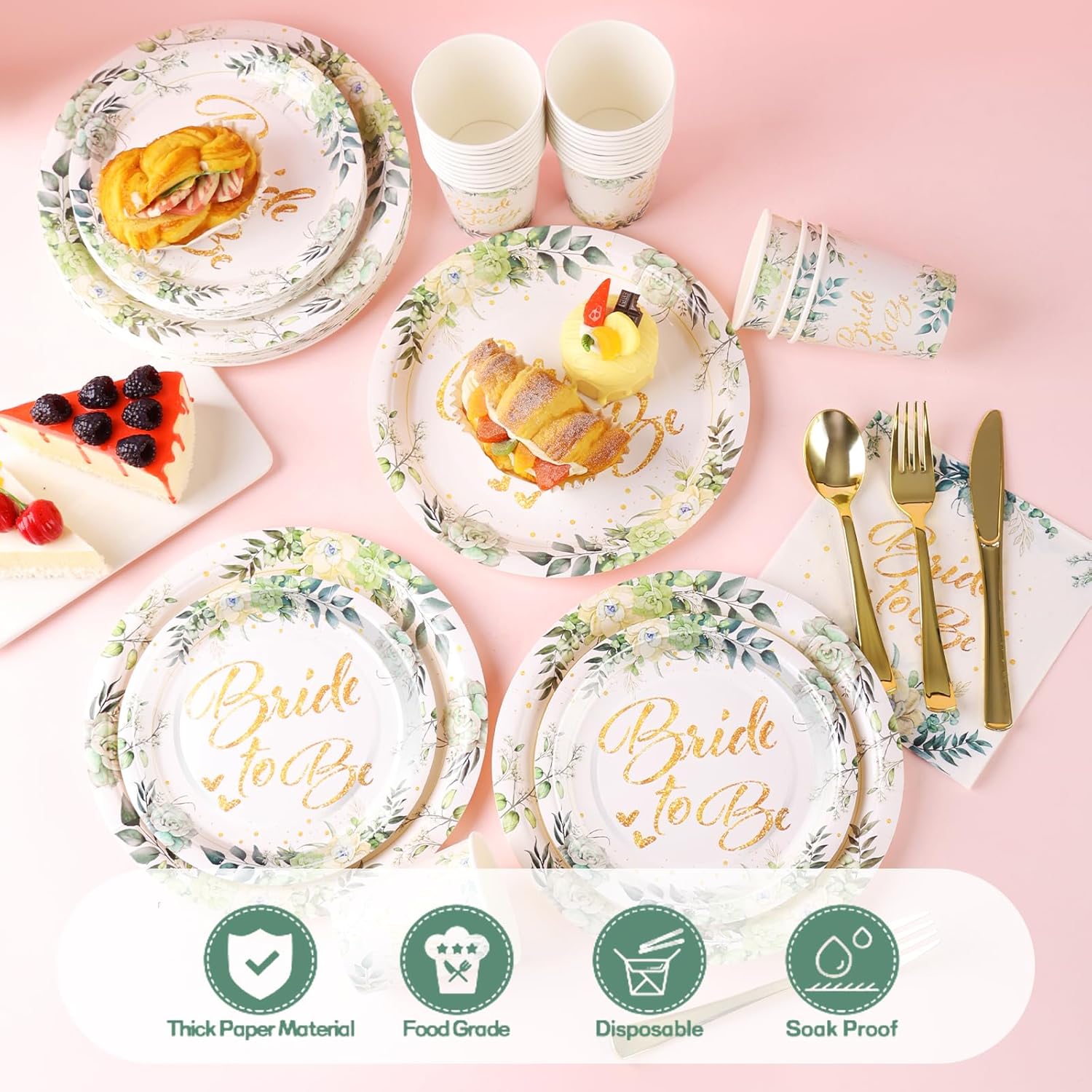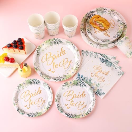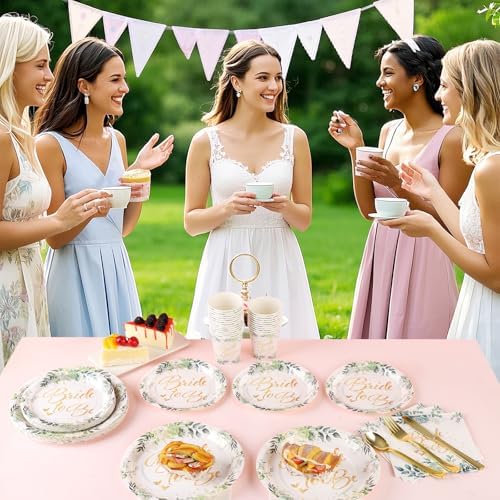 - 【Exquisite and elegant design】This bride-themed party plate is surrounded by a circle of various green leaves and succulents. The plate is printed with the golden “Bride-to-be” font in the middle, and there are golden dots and hearts around it. The wonderful combination of golden fonts and green leaves gives people an elegant and high-end feeling, adding a strong atmosphere to the party, allowing every guest to feel the fresh and high-end party