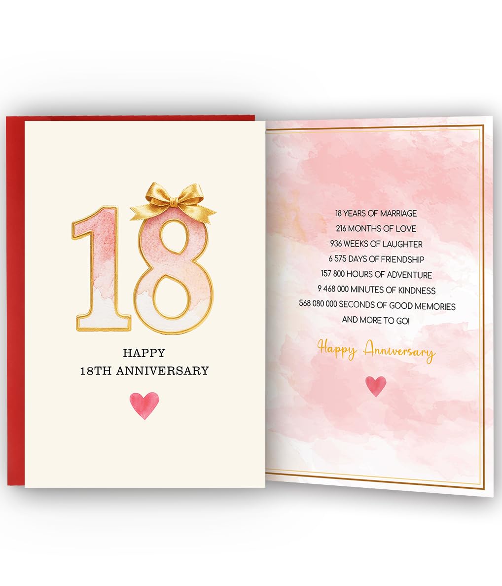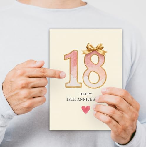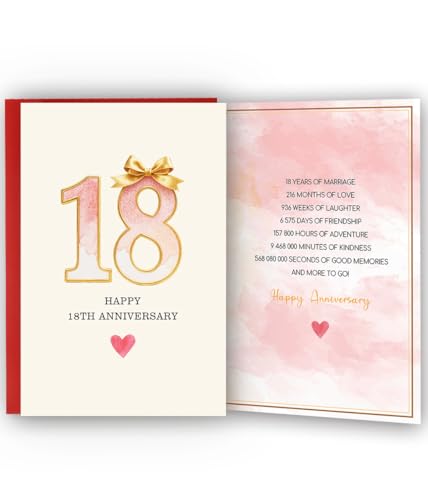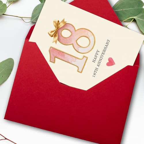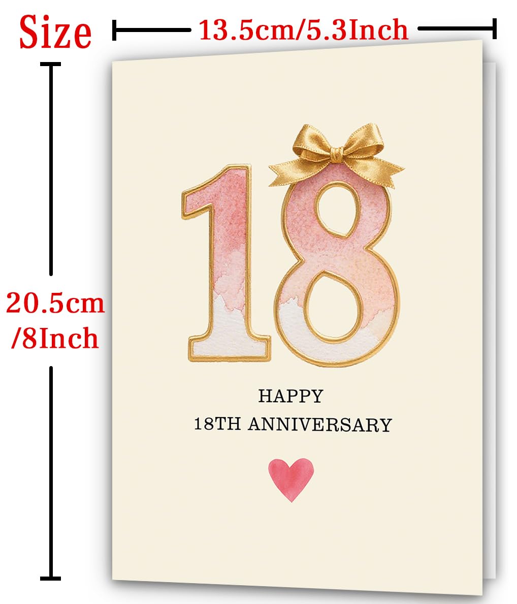 18 Year Anniversary Card,18th Anniversary Card Gifts,18 Year Wedding Anniversary Day Gifts,Happy 18th Anniversary,8×5.3 Inches,Double-Sided