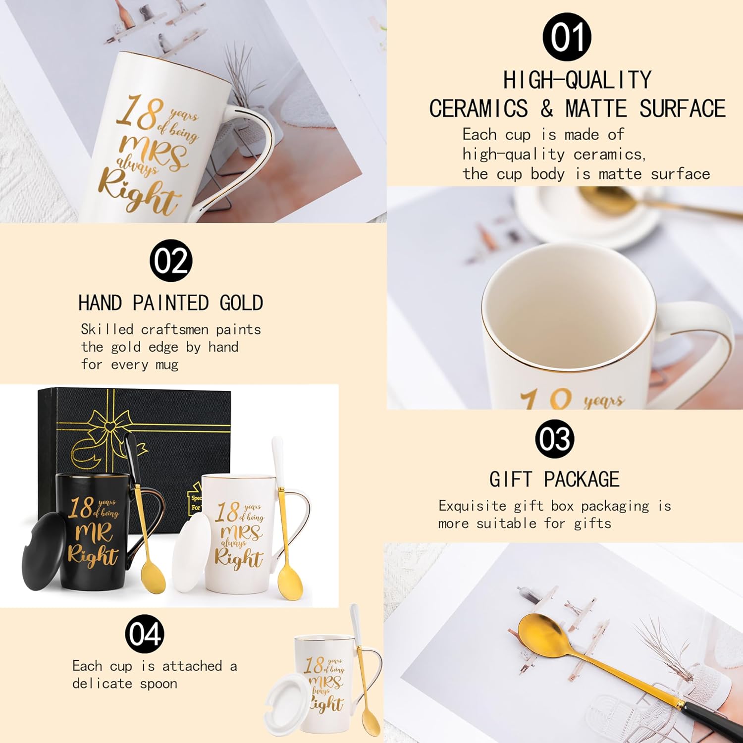 - BEST 18TH ANNIVERSARY GIFT: Are you looking for a romantic and meaningful way to celebrate a 18th wedding anniversary? Our 18th wedding anniversary coffee mug set is your best choose! It’s specially designed for parents, grandparents, couples 18th wedding anniversary, When they receive this 18th anniversary gift, they will relive the moment they fell in love!
