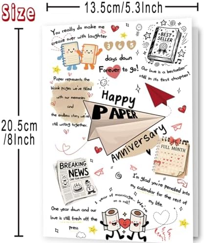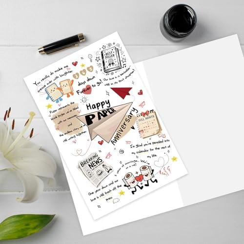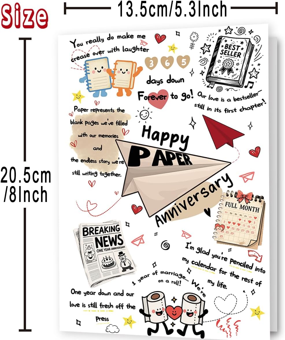 1st Anniversary Card for Couple, Romantic Paper Wedding Anniversary Card for Husband Wife Boyfriend Girlfriend with Envelope – 5 x 8.3 in
