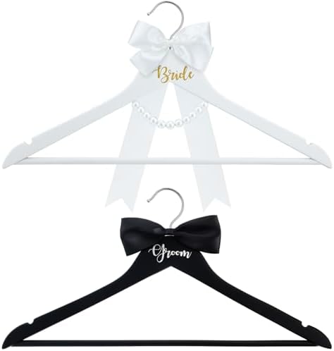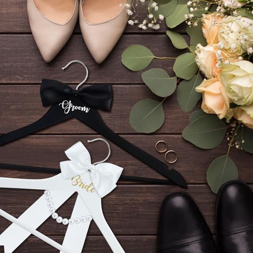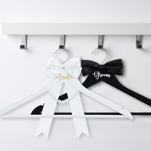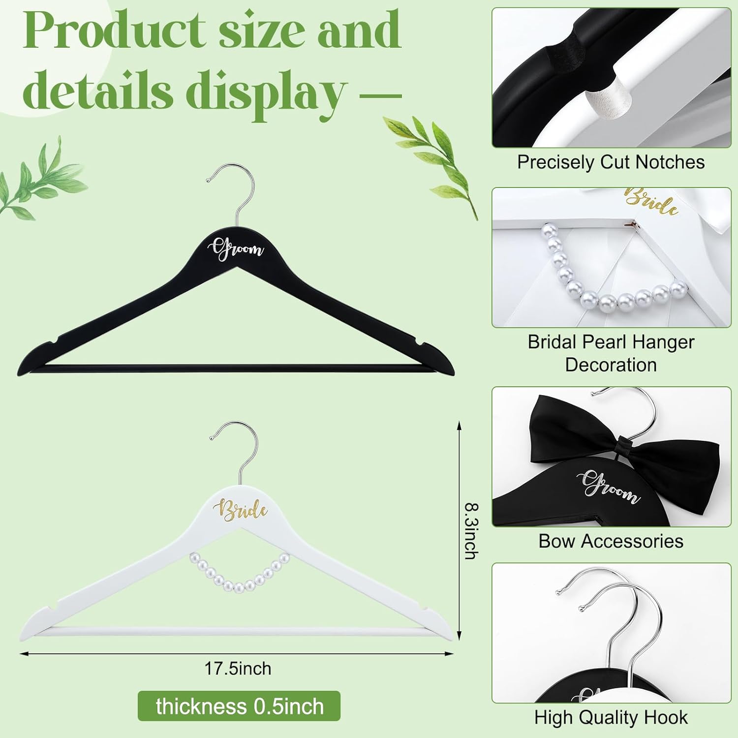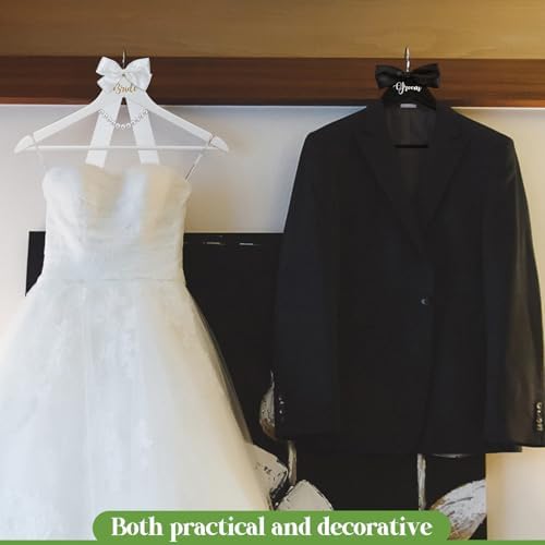 - Wedding Hanger: the package includes 1 bride hanger, 1 groom hanger, 1 black bow and 1 white bow decorations; The rich set can fully meet your DIY needs, adding a touch of elegance to your wedding preparation