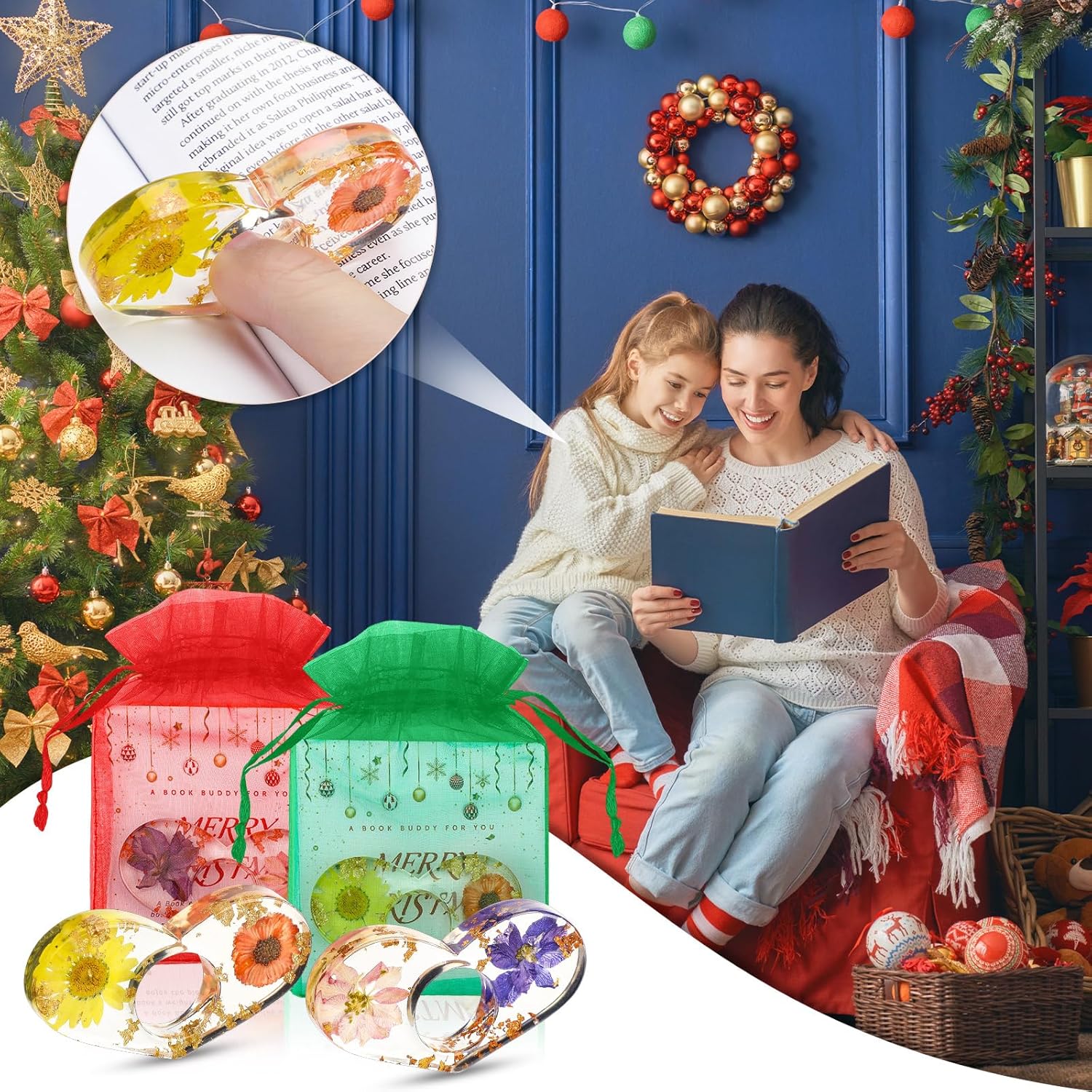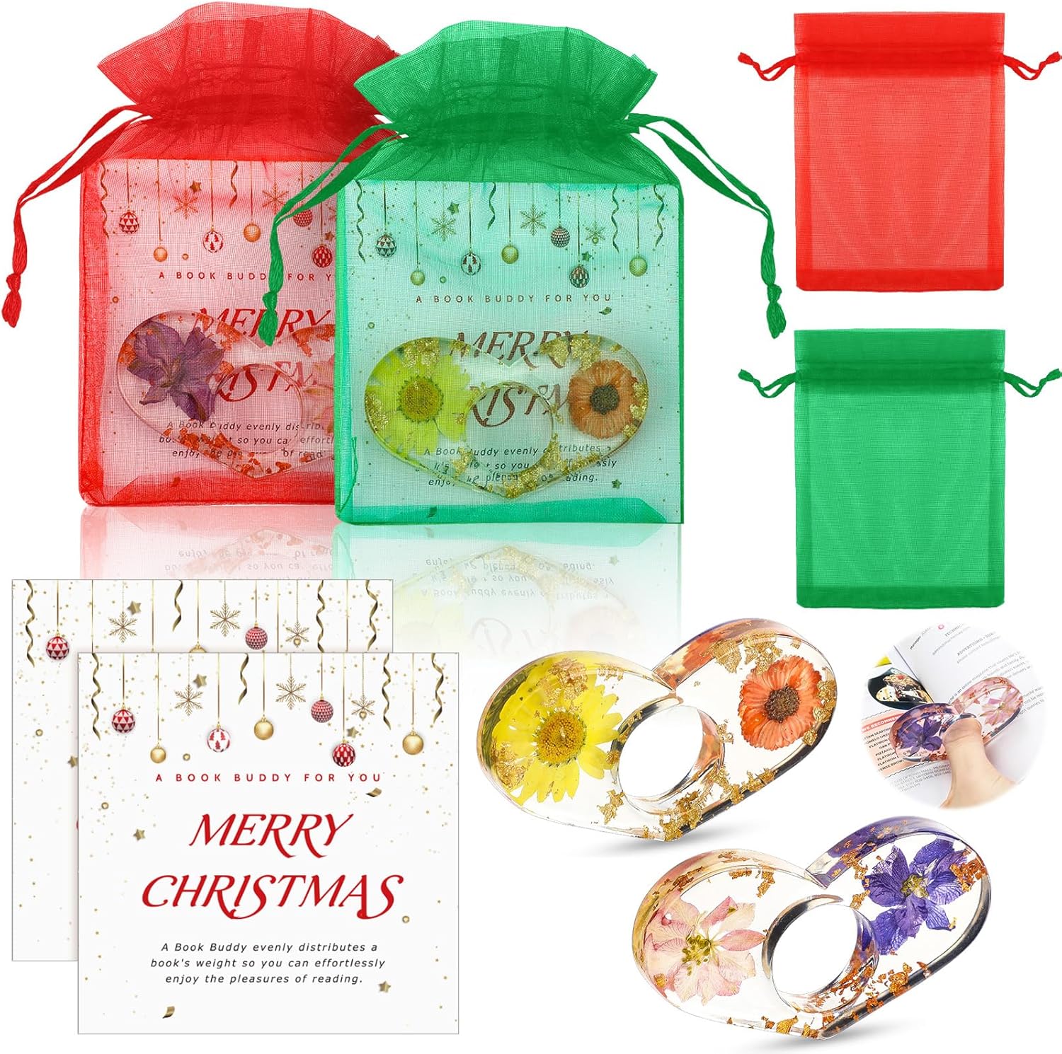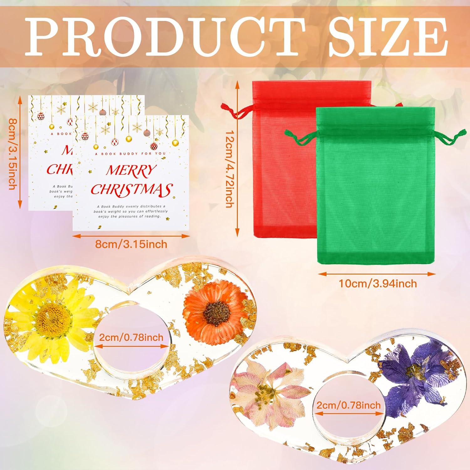 - Delicate Designs: the page holders for reading is designed in a heart shape, the dried flowers in bright colors inside make the whole texture more elegant, creating a warm reading atmosphere and showing your taste; The card has [A Book Buddy evenly distributes a book’s weight so you can effortlessly enjoy the pleasures of reading] printed on one side, on the reverse side, you can write your words of blessing to others; The color of the organza bag is also suitable for Christmas which is classic