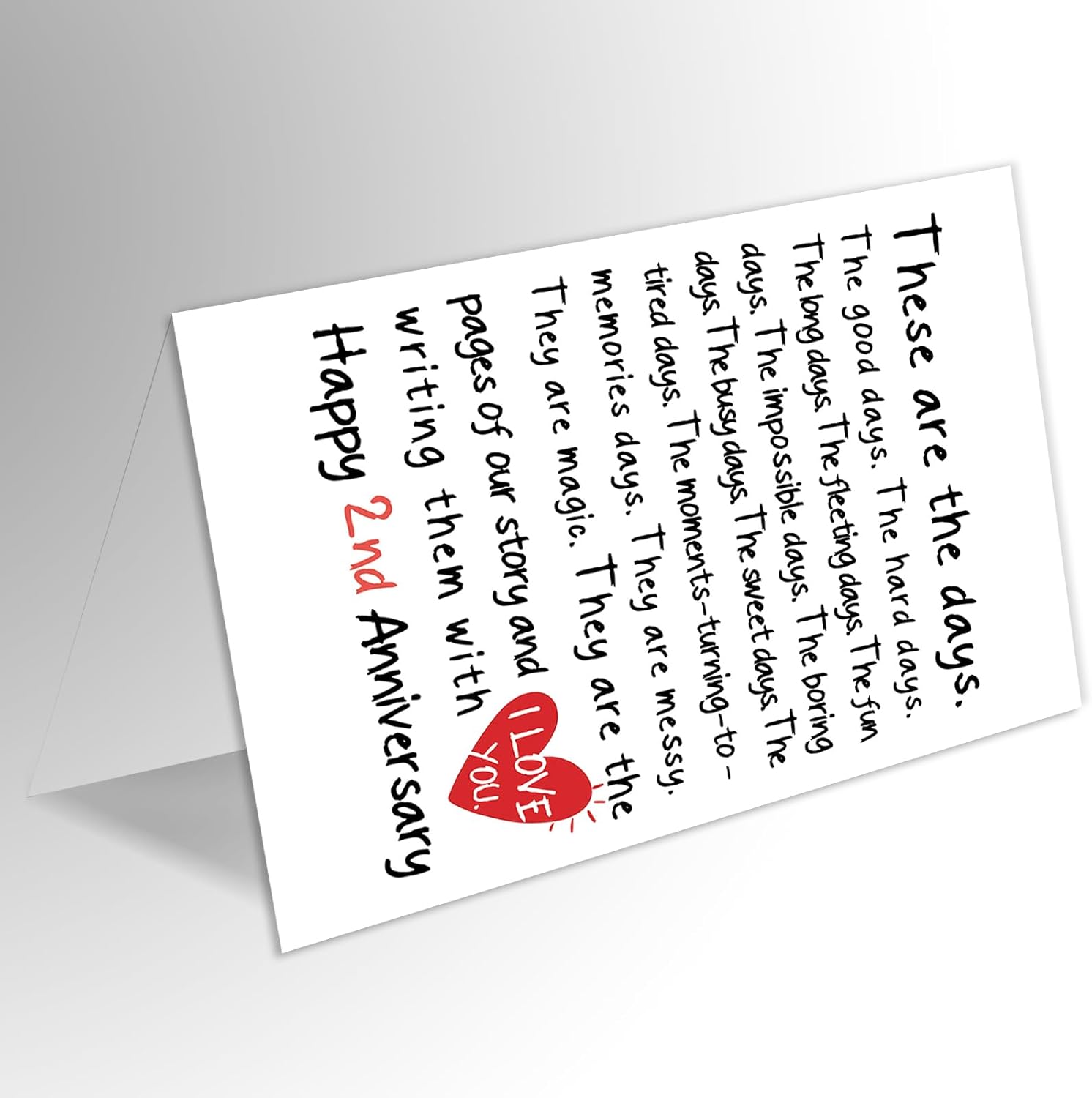 • This 2nd anniversary card is crafted with heartfelt emotion at its core — using simple words and gentle warmth to capture the real, shining moments of love. It celebrates life, not just love. It embraces imperfection and treasures every piece of the everyday — the laughter, the weary days, the quiet moments, and the warmth of being together. These are what make love truly beautiful.