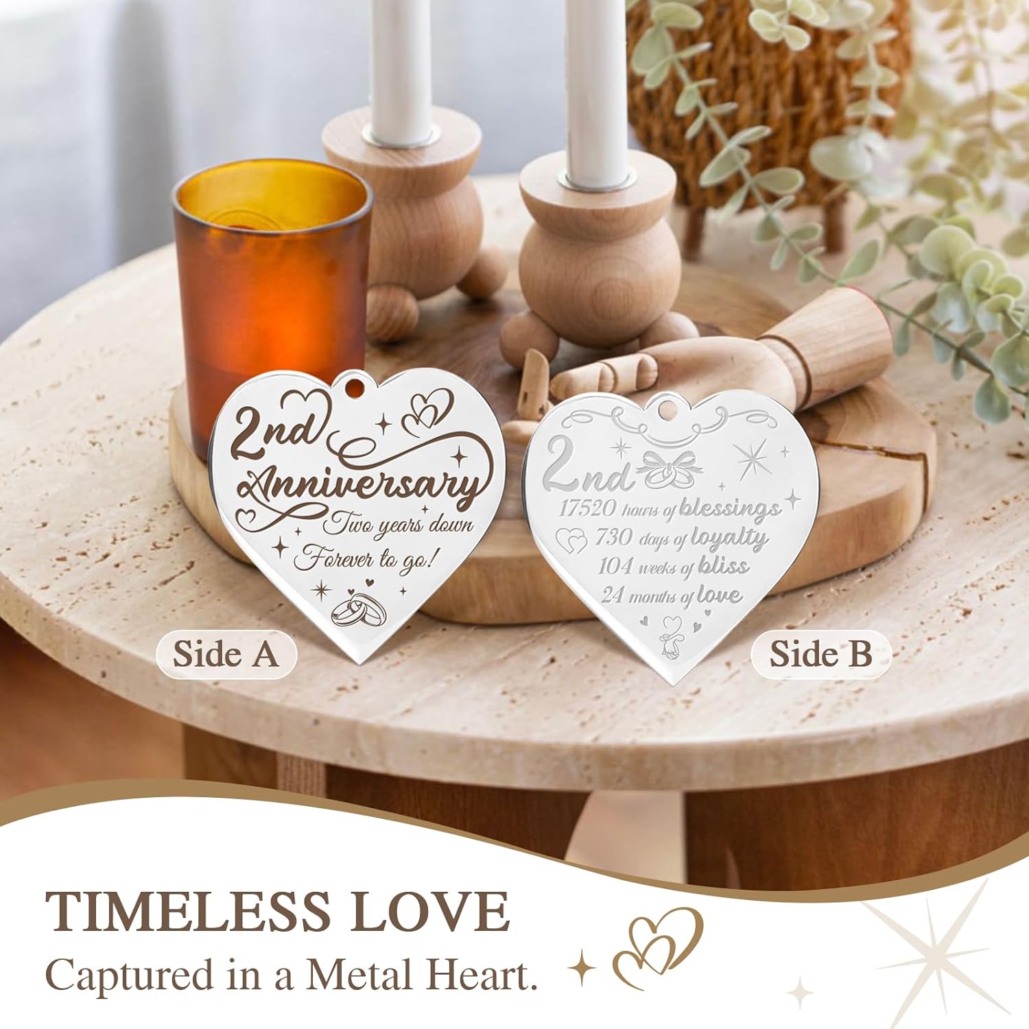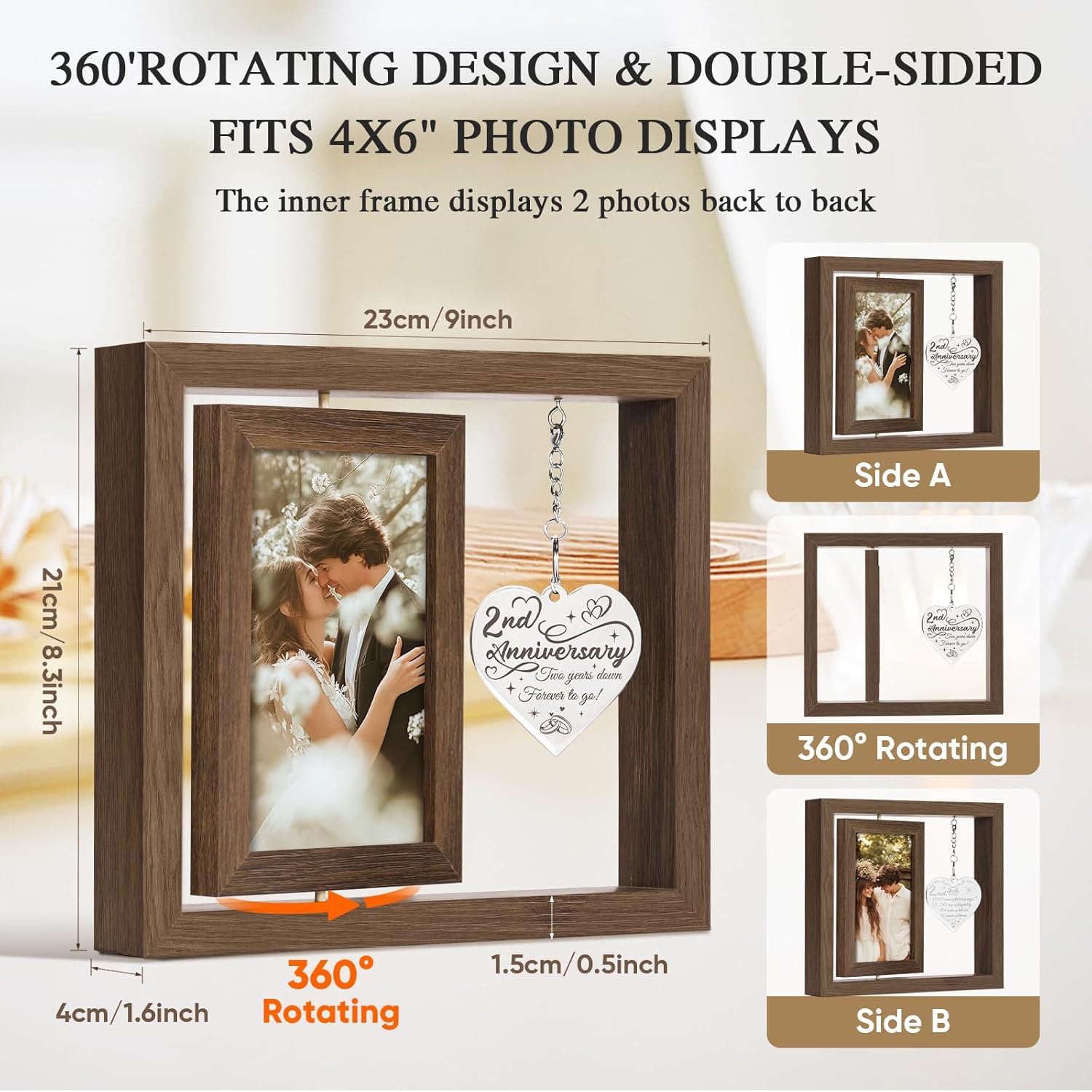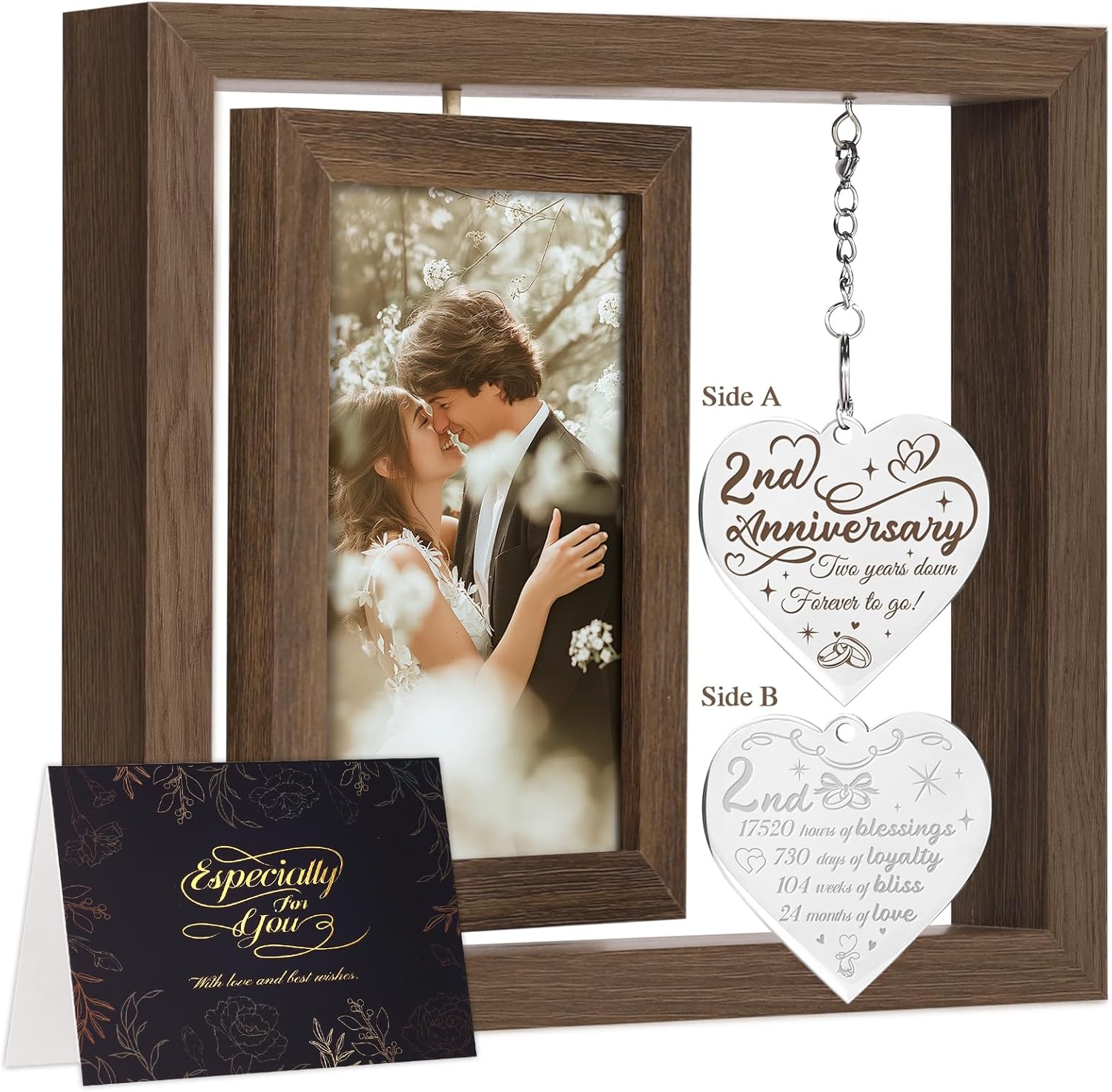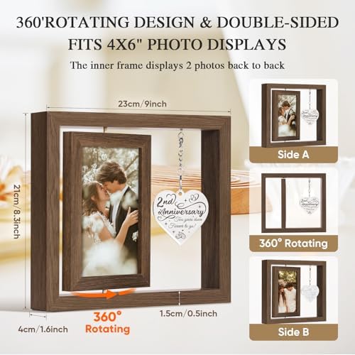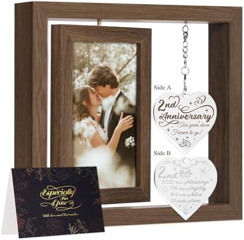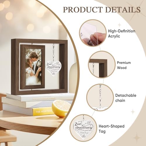 - Creative 2nd anniversary gifts for girlfriend/ boyfriend: Our anniversary photo frame can hold two 4×6 inch photos, one in the front and one in the back. The thoughtfully designed heart-shaped tag is engraved with heartfelt anniversary quotes, creating a warm yet simple declaration of eternal love between couples.