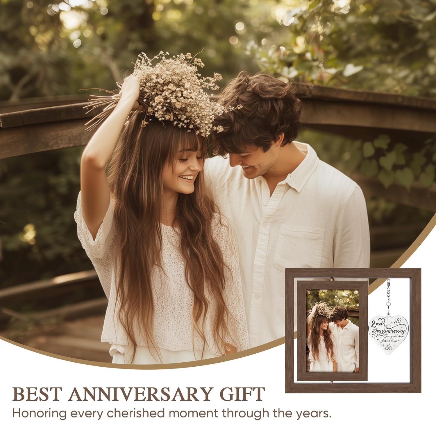 - Exquisite 2nd anniversary gifts for him/ her:Our wooden photo frames are crafted from lightweight wood with a vintage wood grain texture. The photo paper is protected by high-definition transparent acrylic, making it scratch-resistant, shatterproof, and waterproof. The metal tag shines with their eternal love declaration, and a romantic ambiance fills the air.