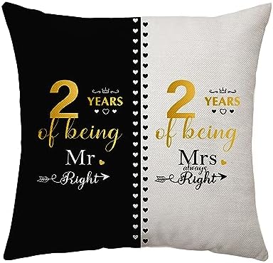 2 Years of Marriage Gifts for Husband Wife Best Wedding Gifts for Couples Unique Mr and Mrs Pillow Case 2nd Anniversary Wedding Gift Marriage Keepsake Decoration (2nd)