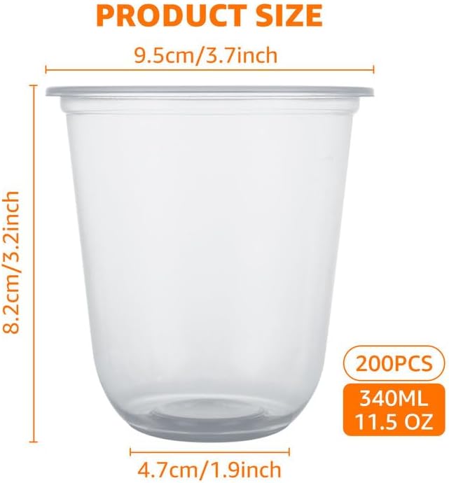 • PACKAGE INCLUDED: You will receive 200 pieces of 11.5 oz clear plastic cups, you can use the convenient and environmentally friendly water cups to serve any cold drinks and enjoy any homemade beverages anytime, anywhere