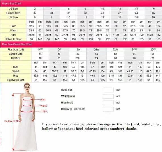 • SIZE:Please READ the OUR SIZE CHART image on the left carefully before you order the dress from us and measure yourself according to our measuring directions for being most suitable, 0.2.4.6.8.10.12.14.16.18.20.22.24.26 or Custom-size.