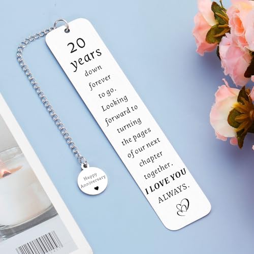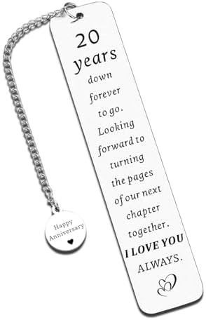 - 20th Happy Anniversary Gifts for Couples — The bookmark is made of stainless steel, just like the love and marriage, strong and durable. 20 year lovely gifts, honeymoon anniversary gifts, bridal shower gift, marriage gift, which would be an unexpected surprise and make her/him have a happy smile. Pick it up to pass deep love to couples, family members, soulmate, partner, S.O., sweetheart, darling, babe/baby, sugar, hubby, wifey, boo.