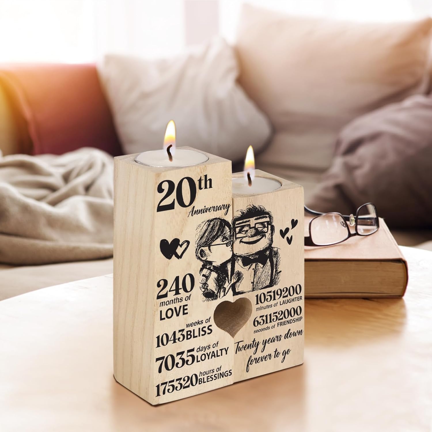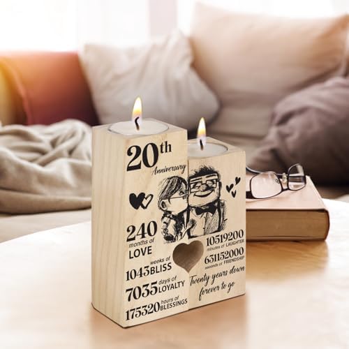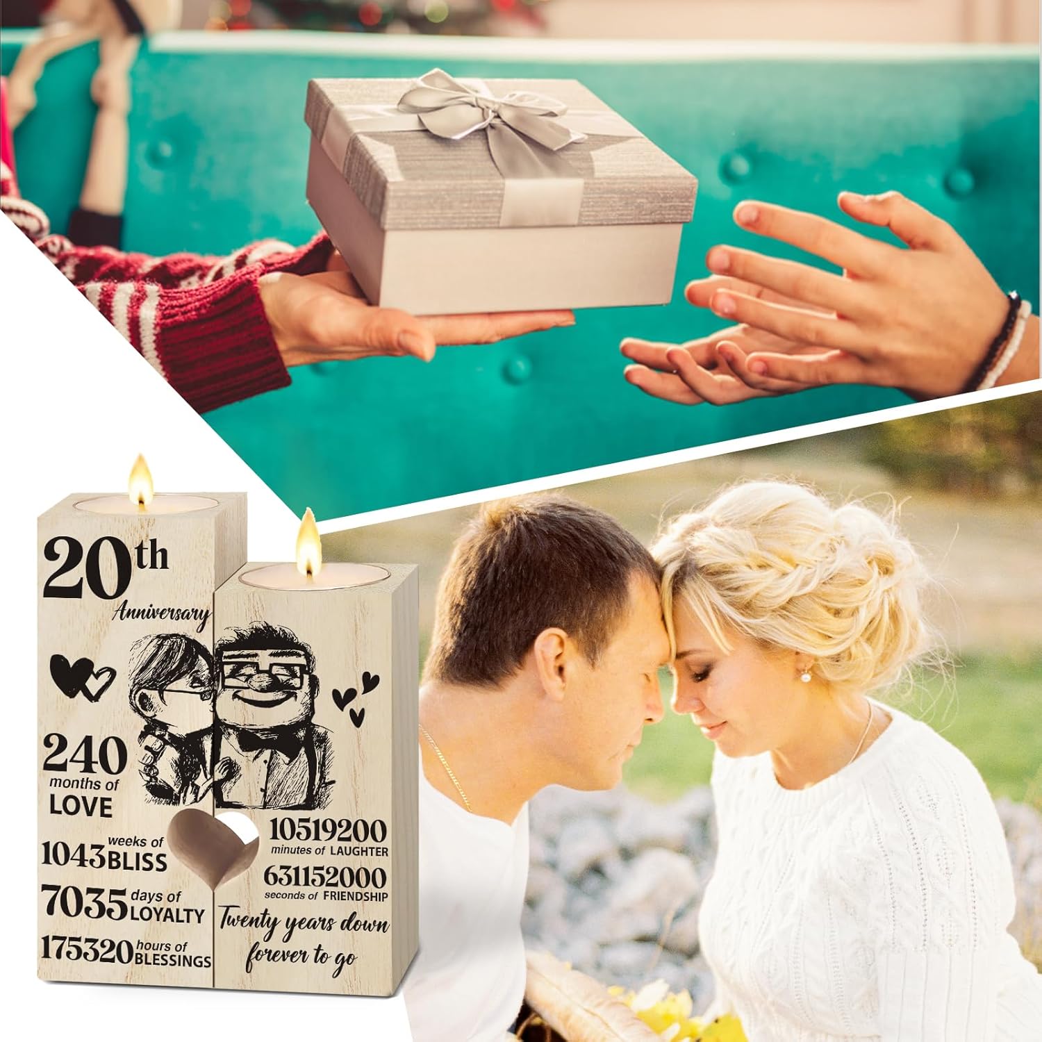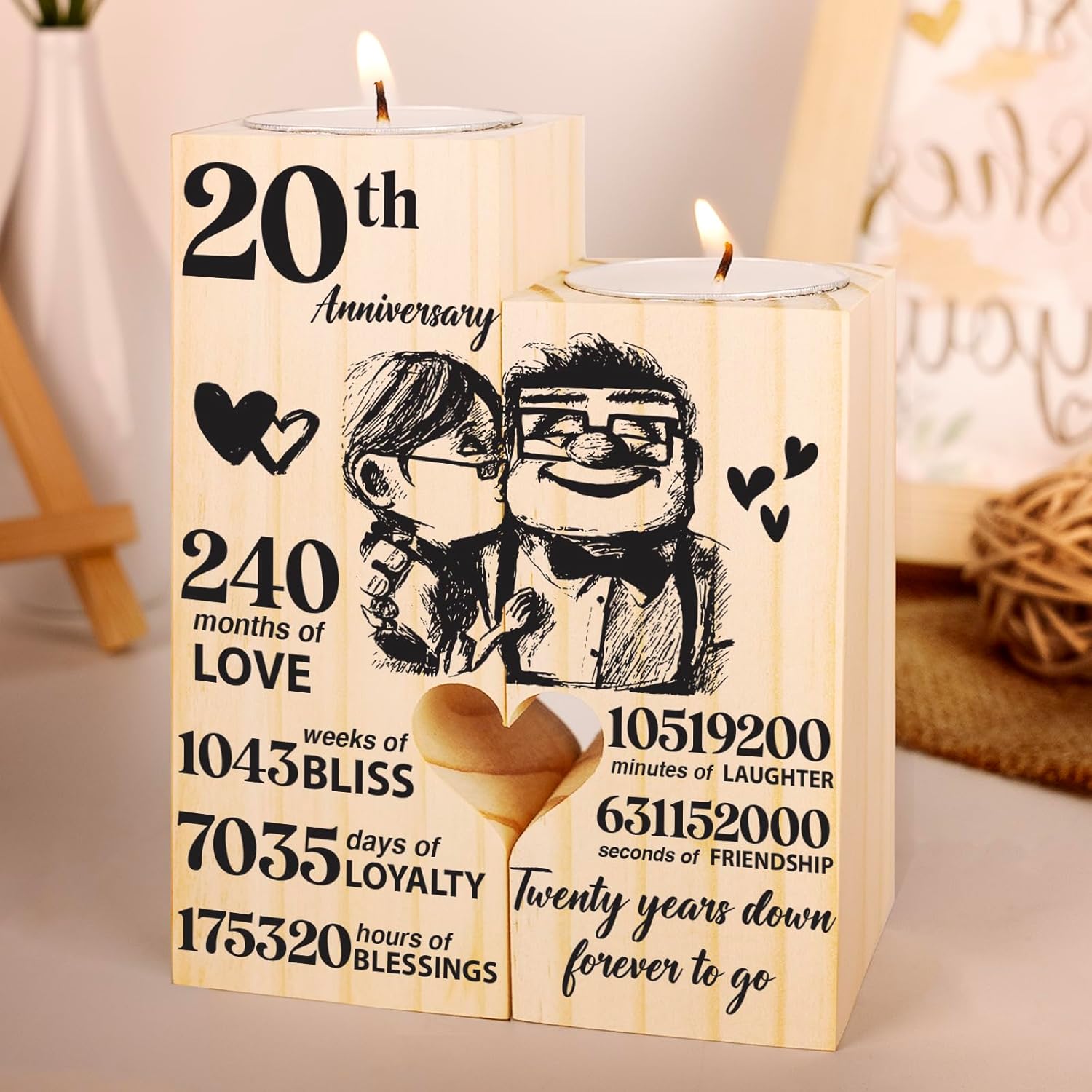 - 20th Anniversary Gifts for Couples: It is such a happy time to spend a full twenty years with your love,experience a new life,and every minute and second spent is so meaningful.From the moment you come out of the wedding hall,you are sure that you are two people destined for life.This twenty years anniversary gifts candlestick records every minute and second of your year, surprise your husband/wife with this 20th anniversary gfits for couple