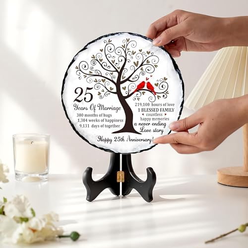- Slate Craftsmanship: Expertly crafted from durable stone, this commemorative plate beautifully captures the essence of a 25-year journey.