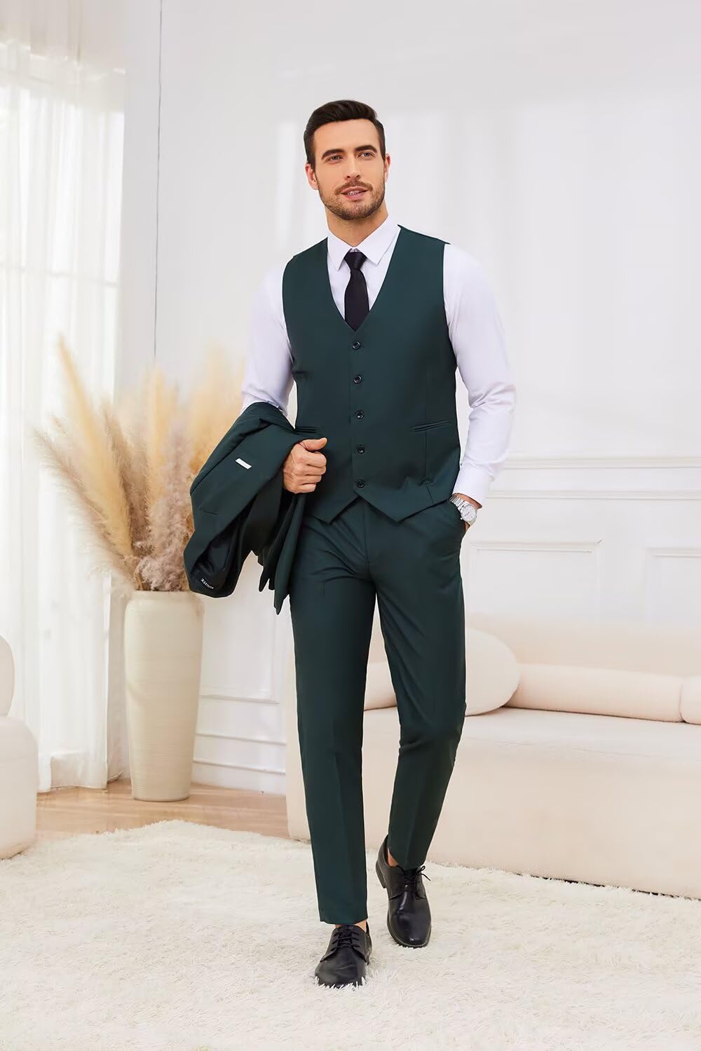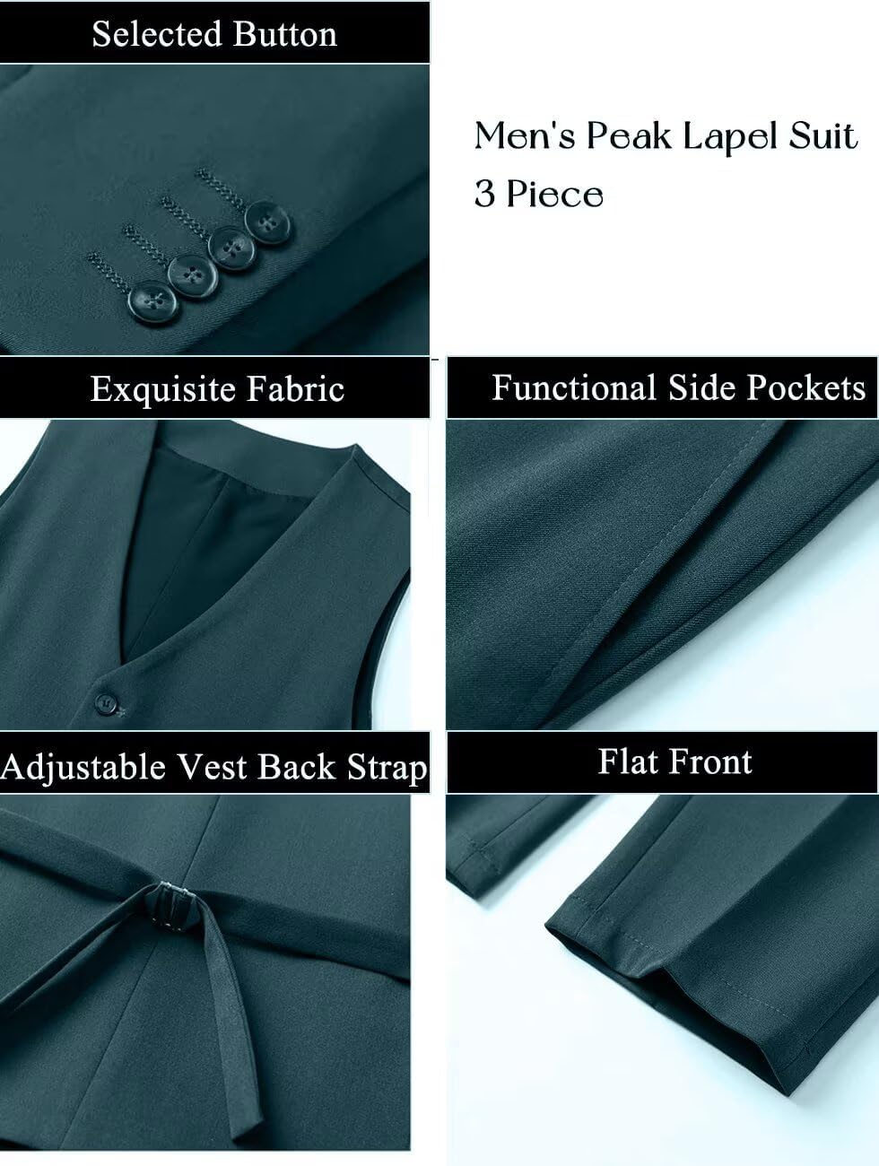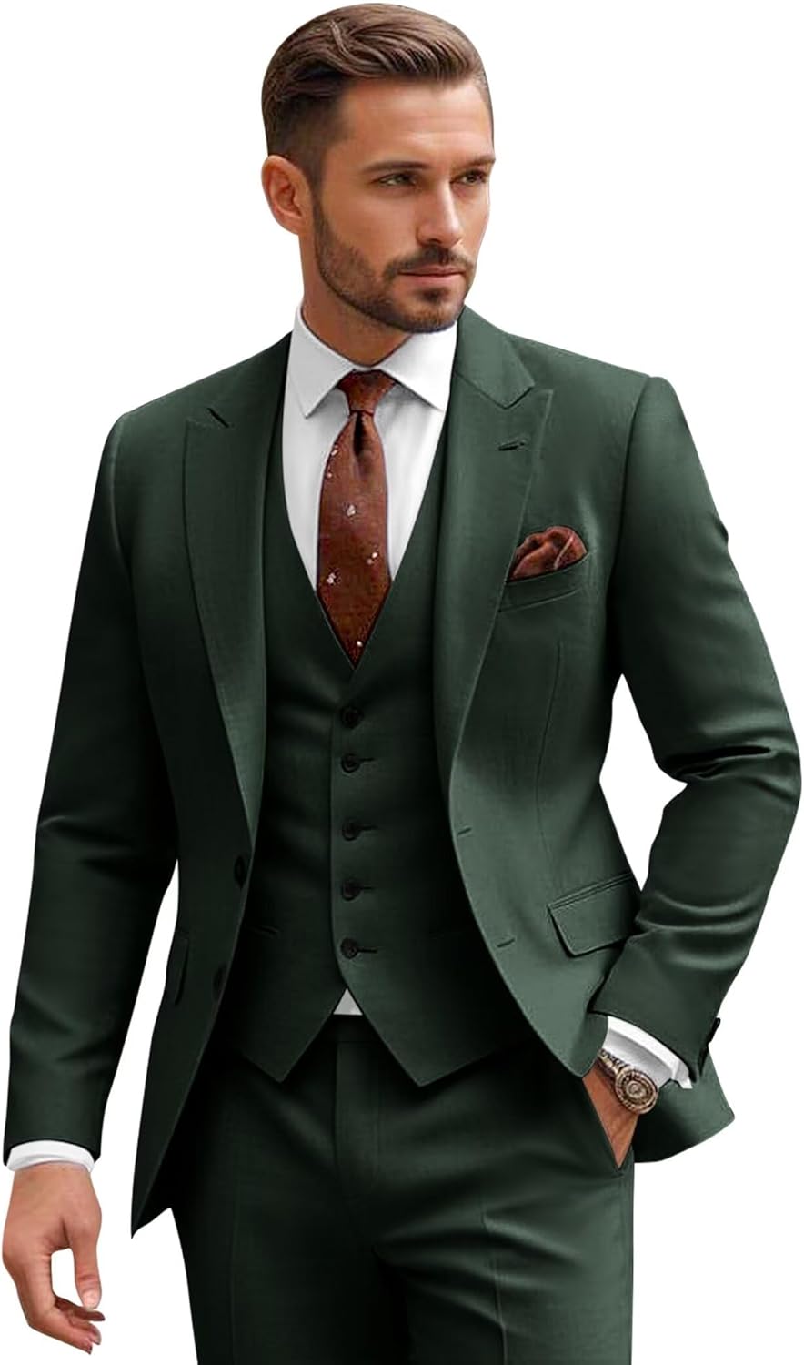 • Formal or Casual Suits Occasions: 2 Button Peak Lapel Blazer Slim Fit Suits 3 Pieces Sets Dark Green Suits for Men Regular Classic Fit Dark Green Suit Sets is great suitable for any occasion at Wedding/Prom/Party/Dinner/Graduation/Valentine ‘s Day/Birthday Party/Father’ s Day Suits, Prom Suits,Homecoming Suits,Wedding Suits etc. Unique design can let you look brand-new shine on any occasion, is also in the special festival to Father/Son/Boyfriend/Husband best Elegant Suits