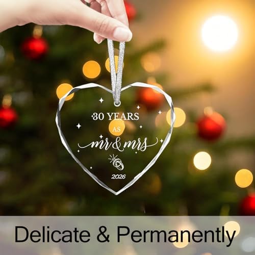 - 30th Anniversary Ornaments 2026- 3″ hanging 30 year anniversary ornament perfect festivities 30 year anniversary. The elegant pattern will make it stand out on the tree or somewhere in the house, also perfect for hanging on gift boxes, great additions to gift.