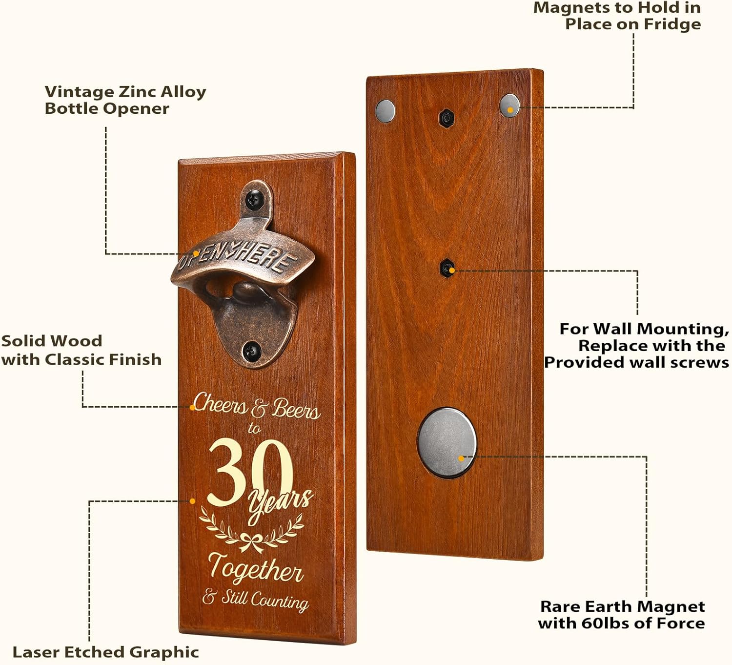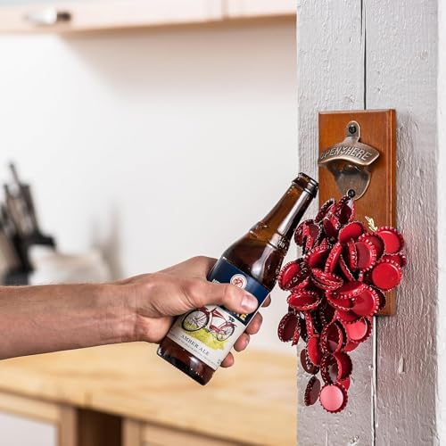 • Our wall beer opener is made of solid wood, includes a heavy-duty, rustic bottle opener with a hidden magnet behind which collects your cap, catches the bottle caps as they fall.