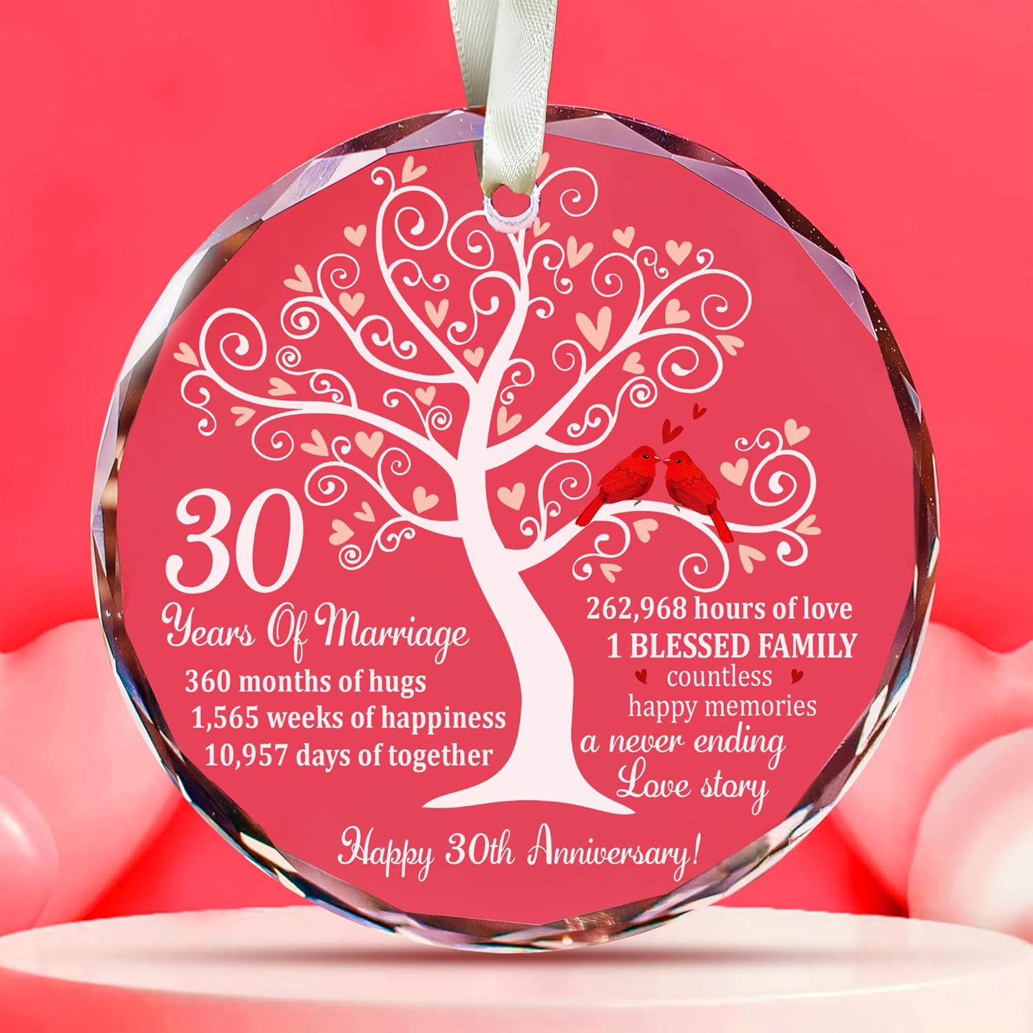 - 🎄 EASY TO USE: This 30th wedding anniversary ornament is ideal for hanging on Christmas trees or as a beautiful decoration in your home. It can be displayed in kitchens, living rooms, or during anniversary celebrations. Suitable for all ages, it serves as a heartfelt gift for couples celebrating their pearl anniversary.