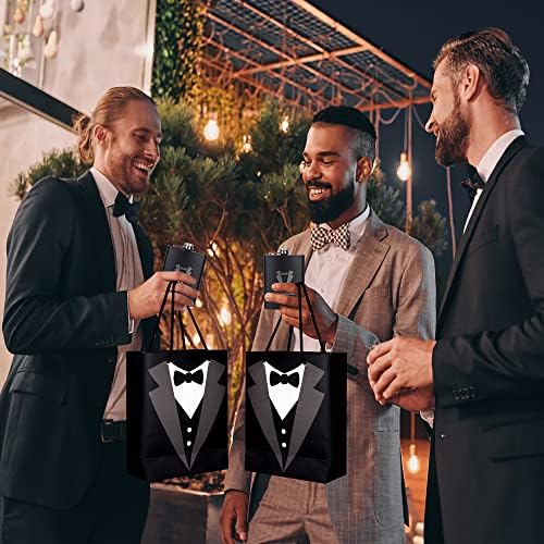 - Groomsman card and gift box:4pcs “WILL YOU BE MY GROOMSMEN ” cards and 1pc “WILL YOU BE MY BEST MAN” cards, which is a fun and classy way to ask your groomsmen to be part of your wedding while flaunting your sense of humor, adding more fun to the process of preparing for your wedding.These premium bags exude a pricey feel,Each gift bag measures approximately 7.5” x 9”,show them you’re classy with these medium sized tuxedo gift bags