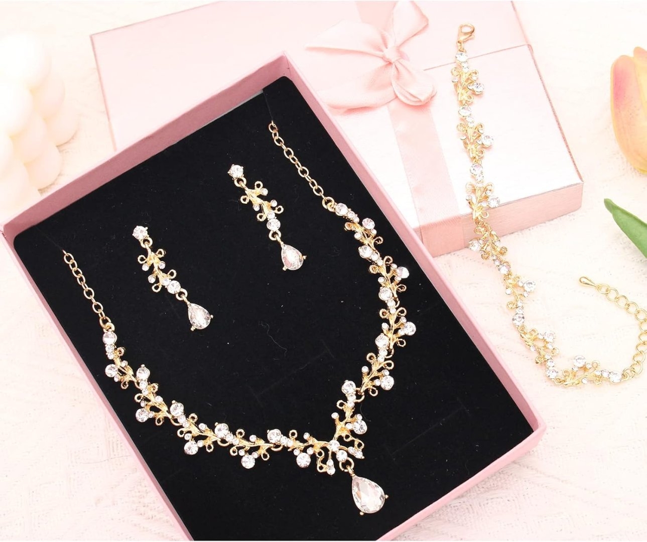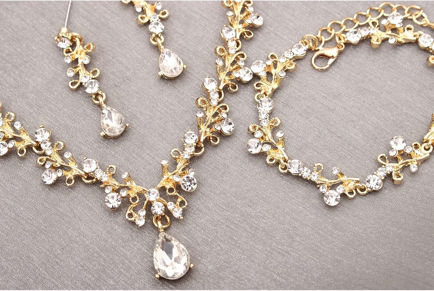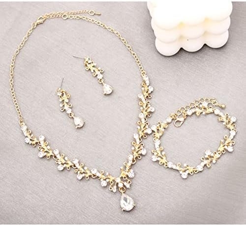 - Specification: Earrings + Necklace + Bracelet, 3 types Jewelry of wedding,Statement Necklace Size:16.5-19 in; Dangle Earrings length:2.2 in; Bracelet length:6-8 in; Lightweight and Comfortable to Wear. Perfect Jewelry Set for Women Ladies.