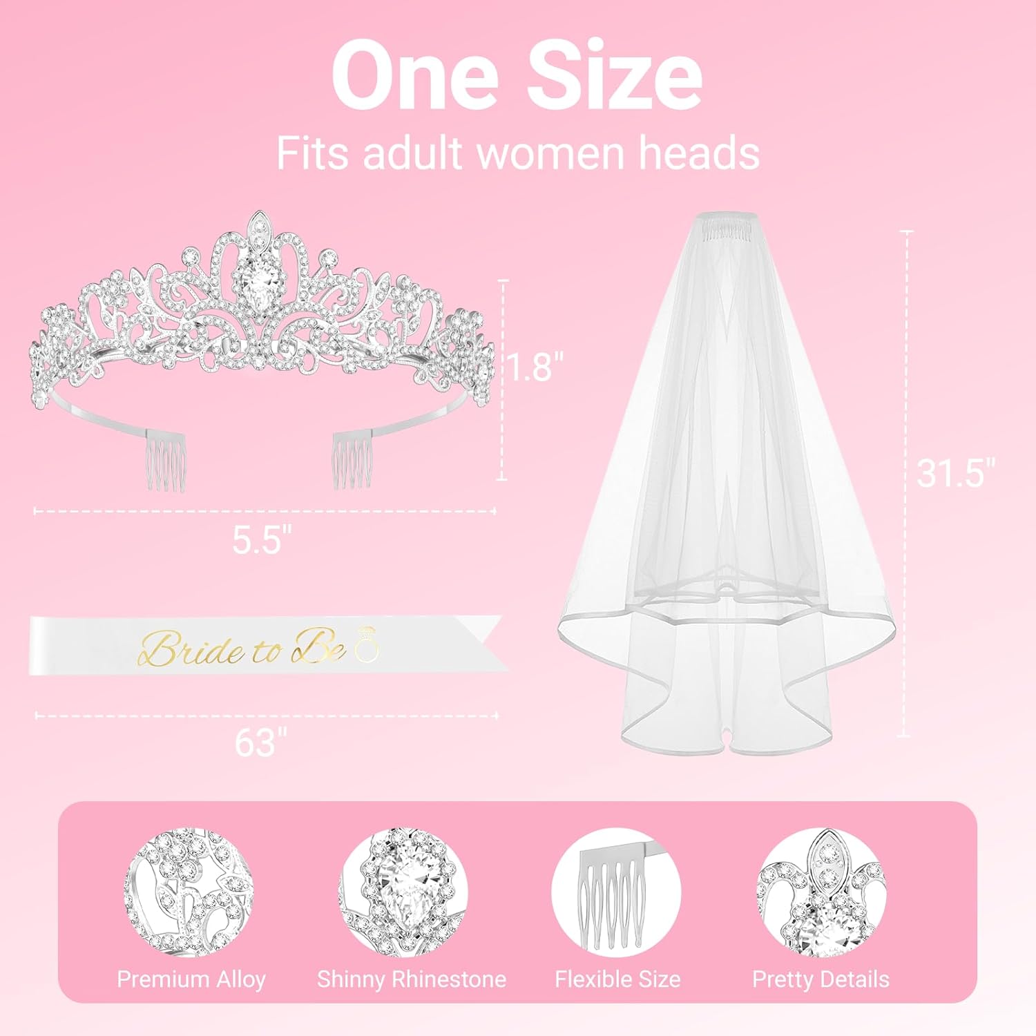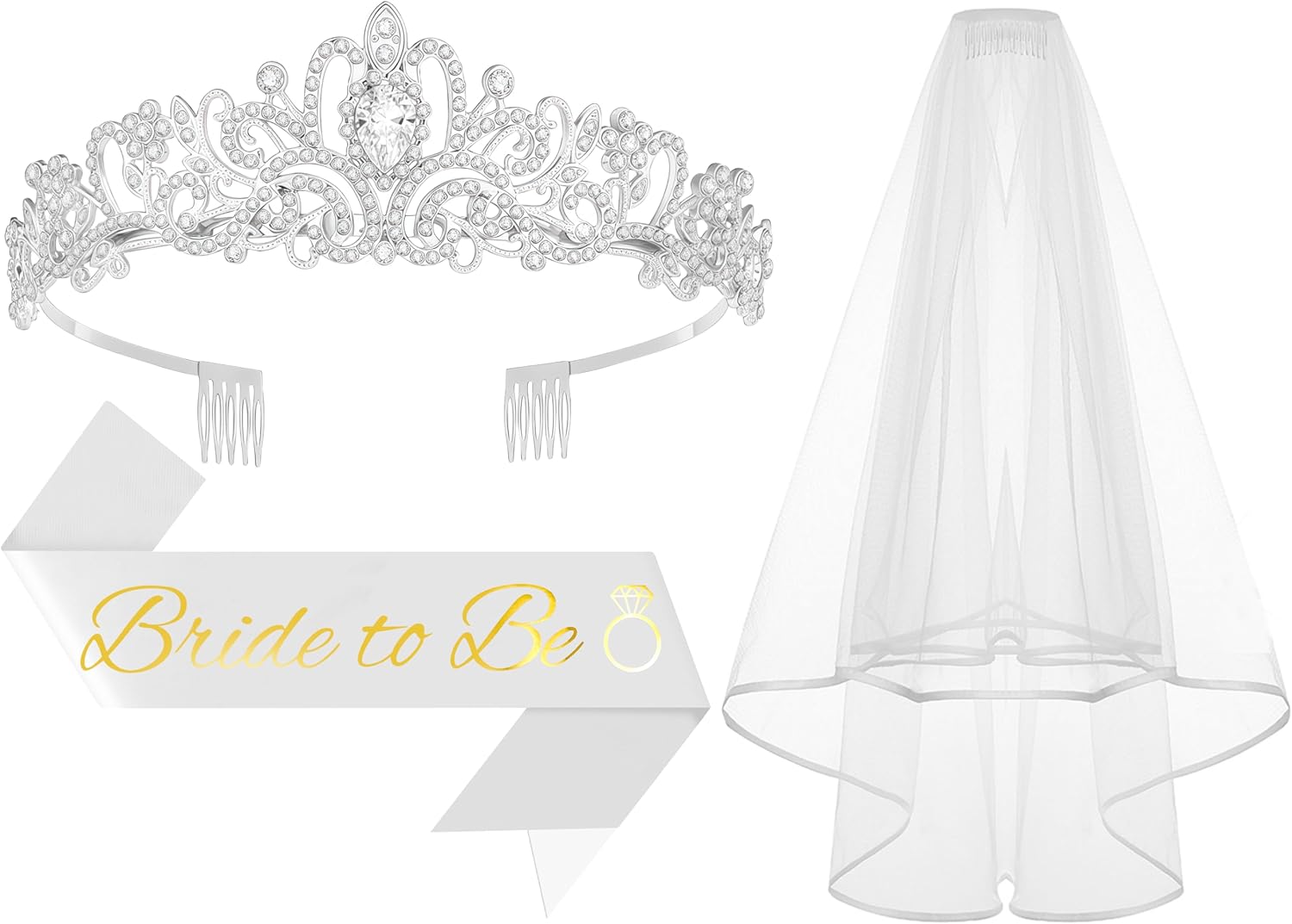 3Pcs Bride to Be Crown with Sash and Veil for Bachelorette Party DecorationsBridal Shower Accessories for Gift, Favors