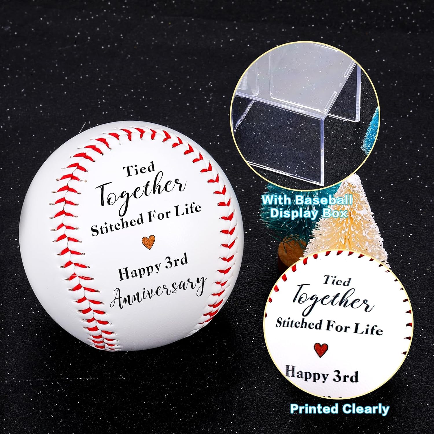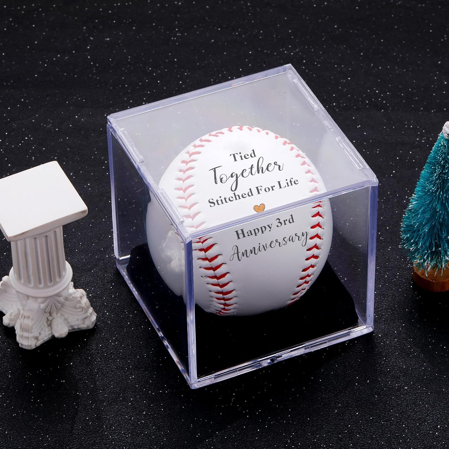 WELCOME to JEWGLOWe are dedicated to helping you express your inner voice with these beautiful little objects and we are happy to make your memories more special!”Tied Together” Anniversary Baseball Stitched with Love for Your Third MilestoneFor couples whove turned three years of shared sunsets, inside jokes, and quiet understanding into something extraordinarythis isnt just a baseball. Its a handcrafted leather heirloom, etched with the promise “Stitched for Life” and crowned with “Happy 3rd Anniversary.” Perfect for husbands, wives, partners, or friends who believe love is a team sport where every pitch counts.Why This Baseball Belongs in Your Love Story A Metaphor Made Tangible”Tied Together” celebrates the intricate weave of partnershipthe late-night talks, compromise, and dreams sewn side by side.”Stitched for Life” transforms from words to a physical vow, stitched into premium leather that ages with grace. Beyond Paper & FlowersFor Him: Engraved with timeless romanceno clich roses.For Her: Blends sentiment with sophistication (display-worthy, not dusty memorabilia).For Them: A shared symbol for the coffee table or bedroom shelf.This baseball honors:The patience of learning his coffee ritualThe joy of finishing her sentencesThe quiet pride in surviving tough seasons togetherPerfect For: Third-anniversary gifts (leather tradition) Vow renewal ceremonies (toss it instead of rice!) Long-distance love tokens (a tangible “I’d choose you again”) Displayed alongside wedding photosSo why wait? Add our baseball to your shopping cart today, and when your lover receives this touching new gift, he will feel your thoughtfulness and love.
