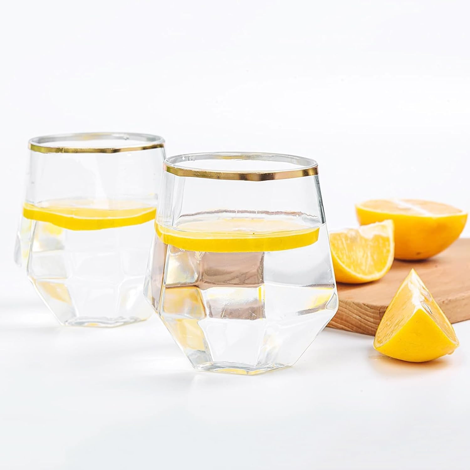 The cup body of our disposable stemless wine glasses adopts a diamond-shaped design, not only can you place it from multiple angles, but you can also easily rotate and tilt it, allowing you to hold it easily. The rim of this diamond plastic cup has a golden edge. The stylish design makes this wine glass more charming and adds a different style to your party.