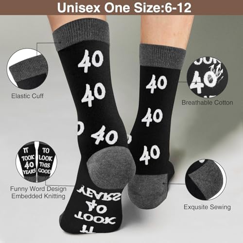 - Unique Gift: Our 40th birthday gifts for him socks are printed with “IT TOOK ME 40 YEARS TO LOOK THIS GOOD” with funny and interesting content, which is an unforgettable gift for your husband, father, friends and so on.