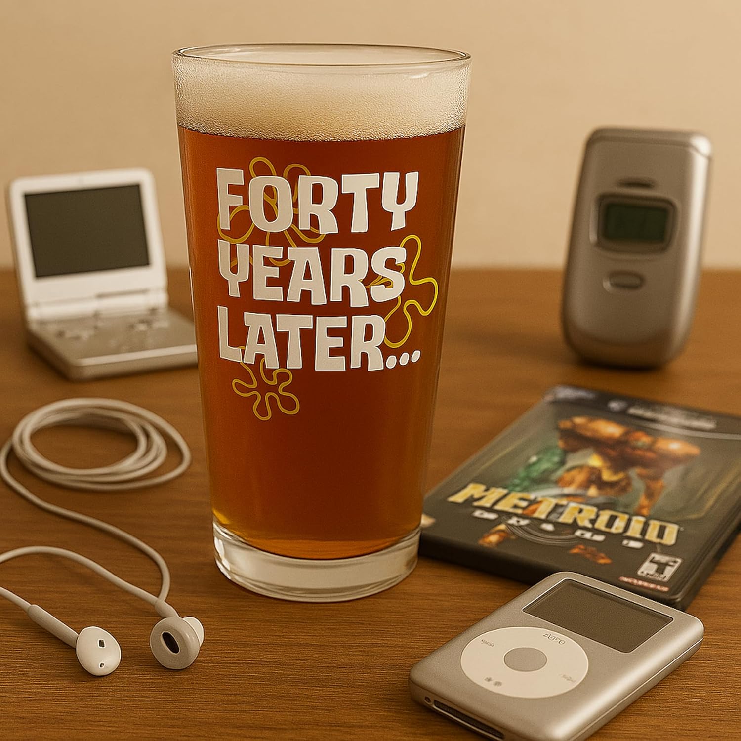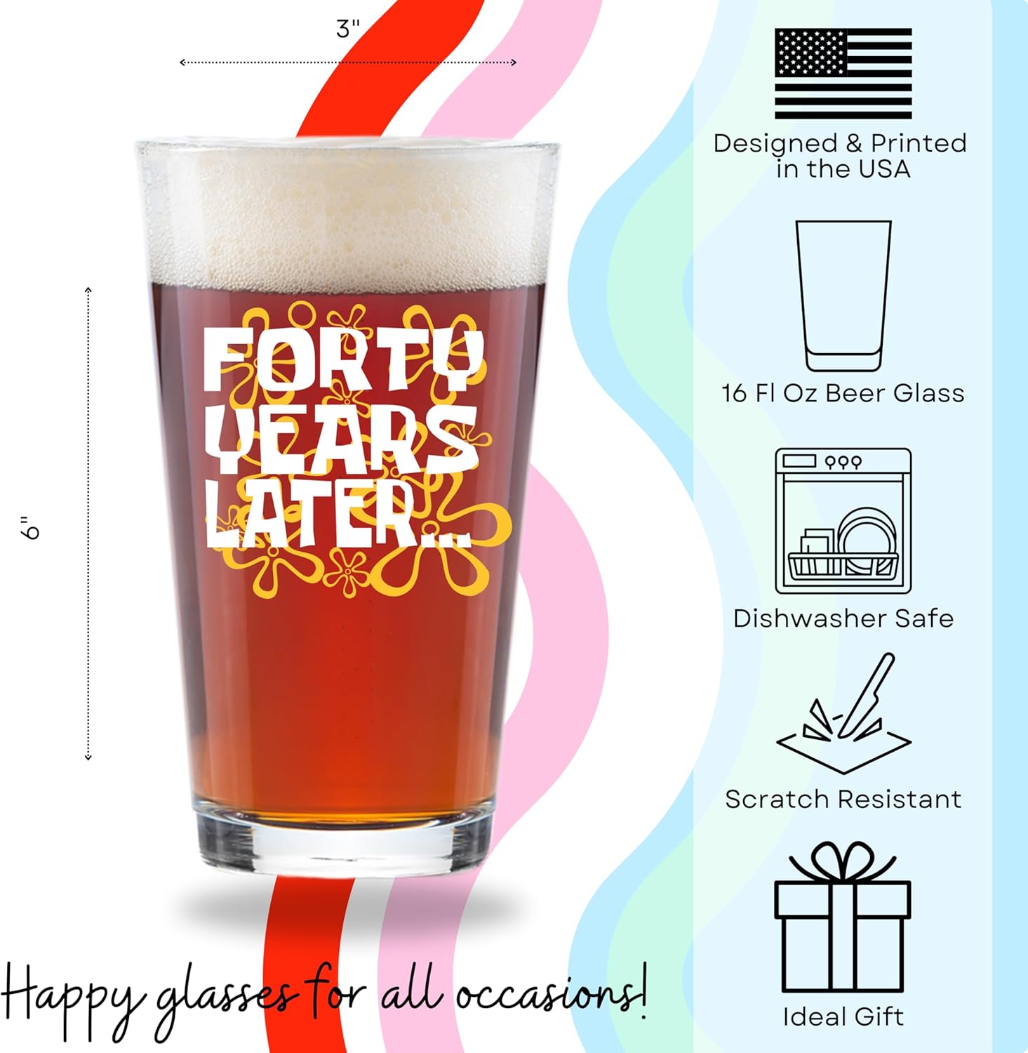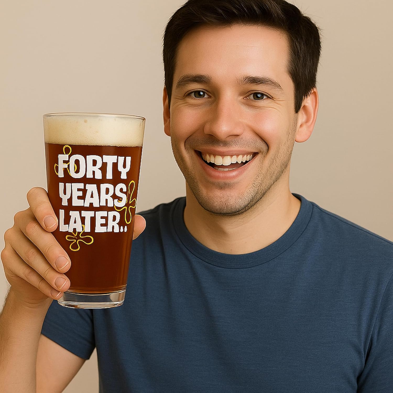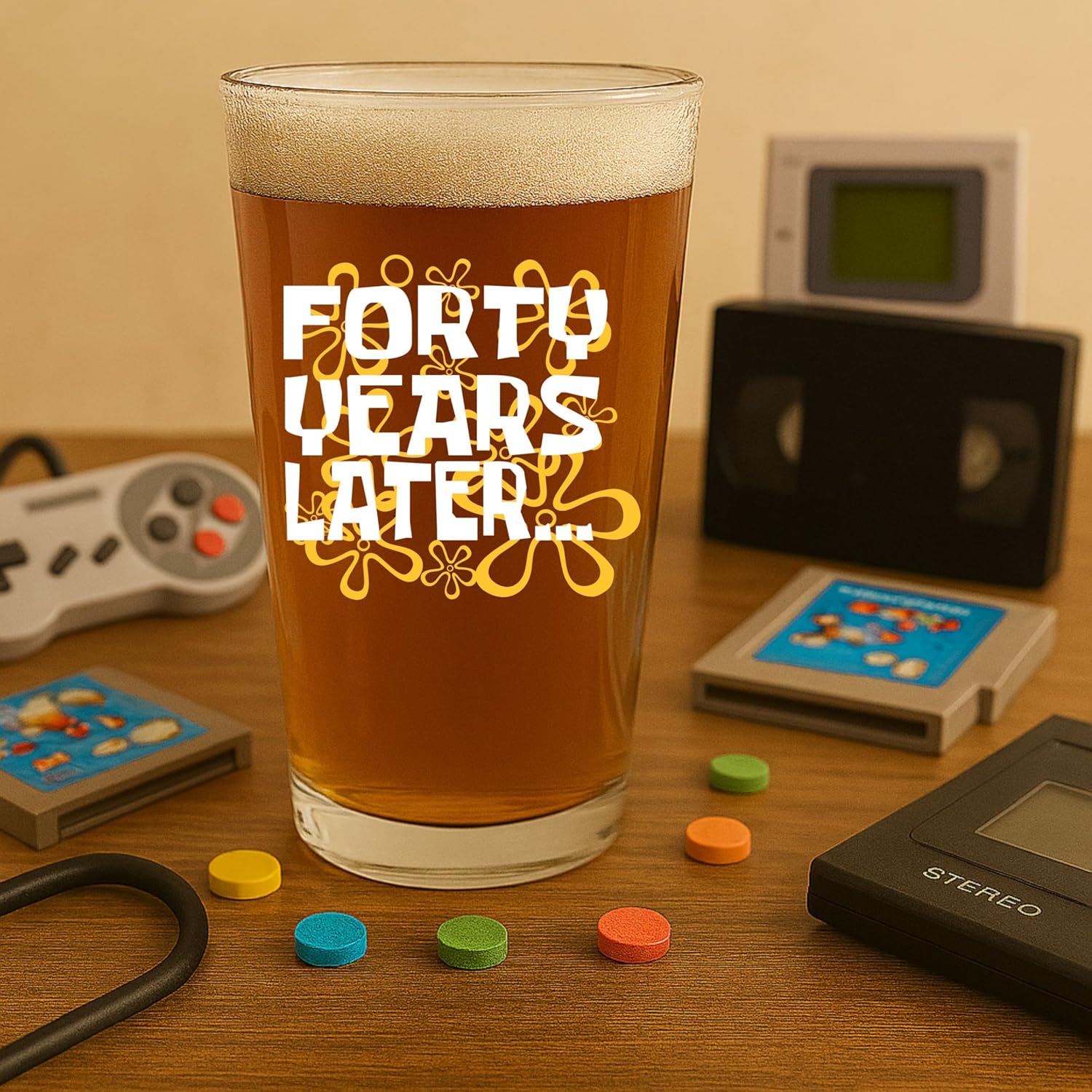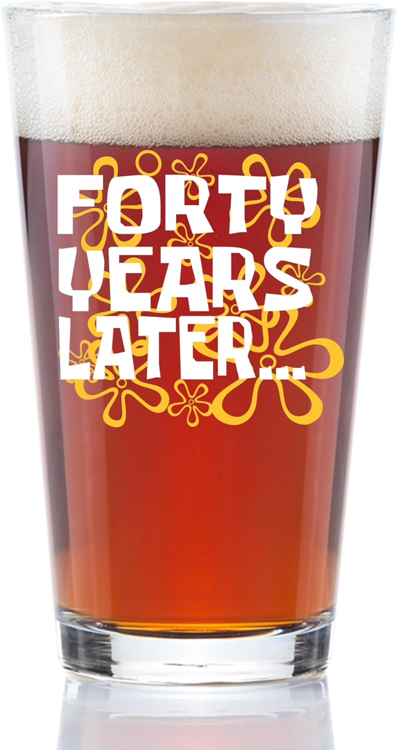 - THROWBACK GLASS FOR THE 90s KID TURNING 40 – Celebrate the big 4-0 with a beer glass that hits right in the childhood. The “40 Years Later” design brings back the vibes of the cartoons we grew up with—because adulting is hard, but beer helps.