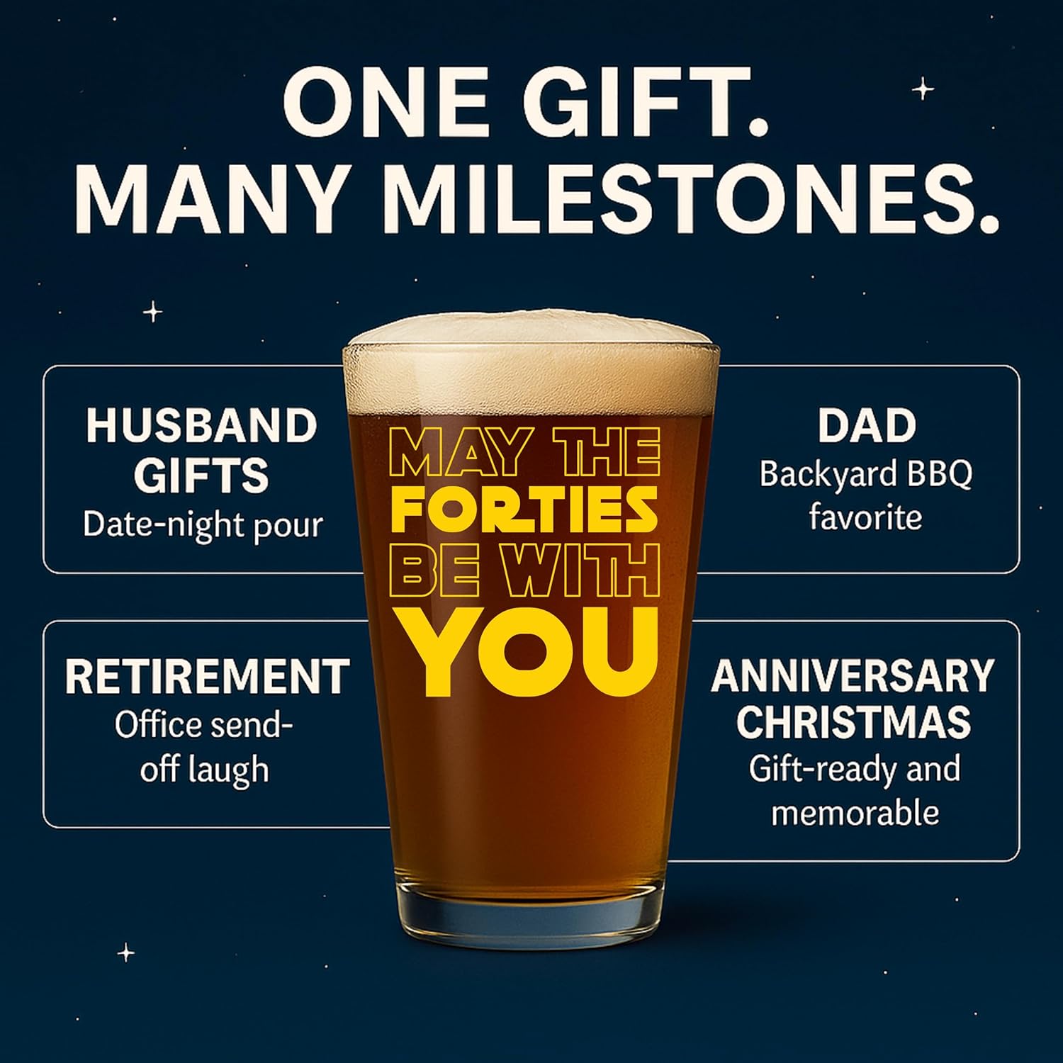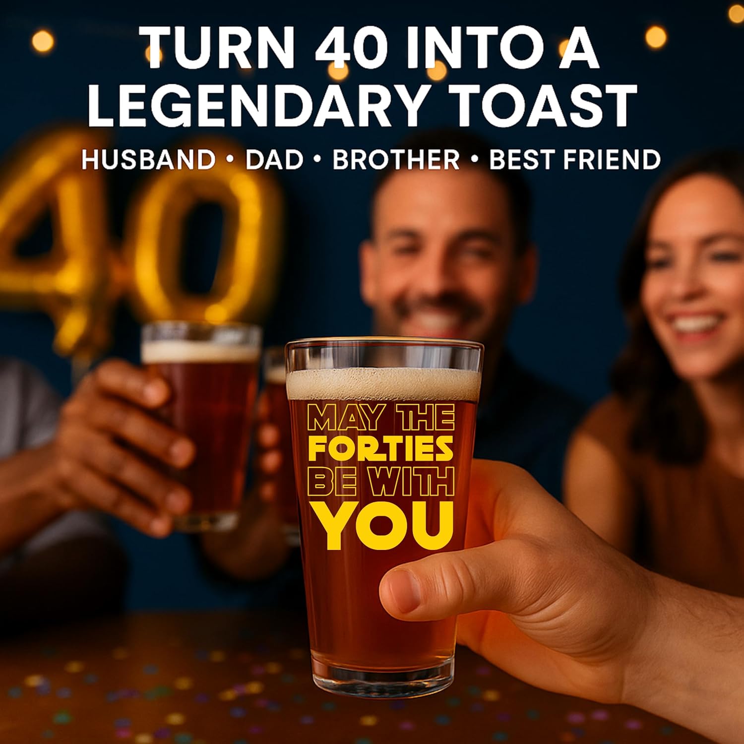 - PERFECT GIFT FOR 40! Designed for 40th birthday gifts men, this 16oz pint reads “May the Forties Be With You” to turn his big 4-0 into a laugh-out-loud toast and a keepsake he’ll actually use. The perfect birthday gift for men who have everything.