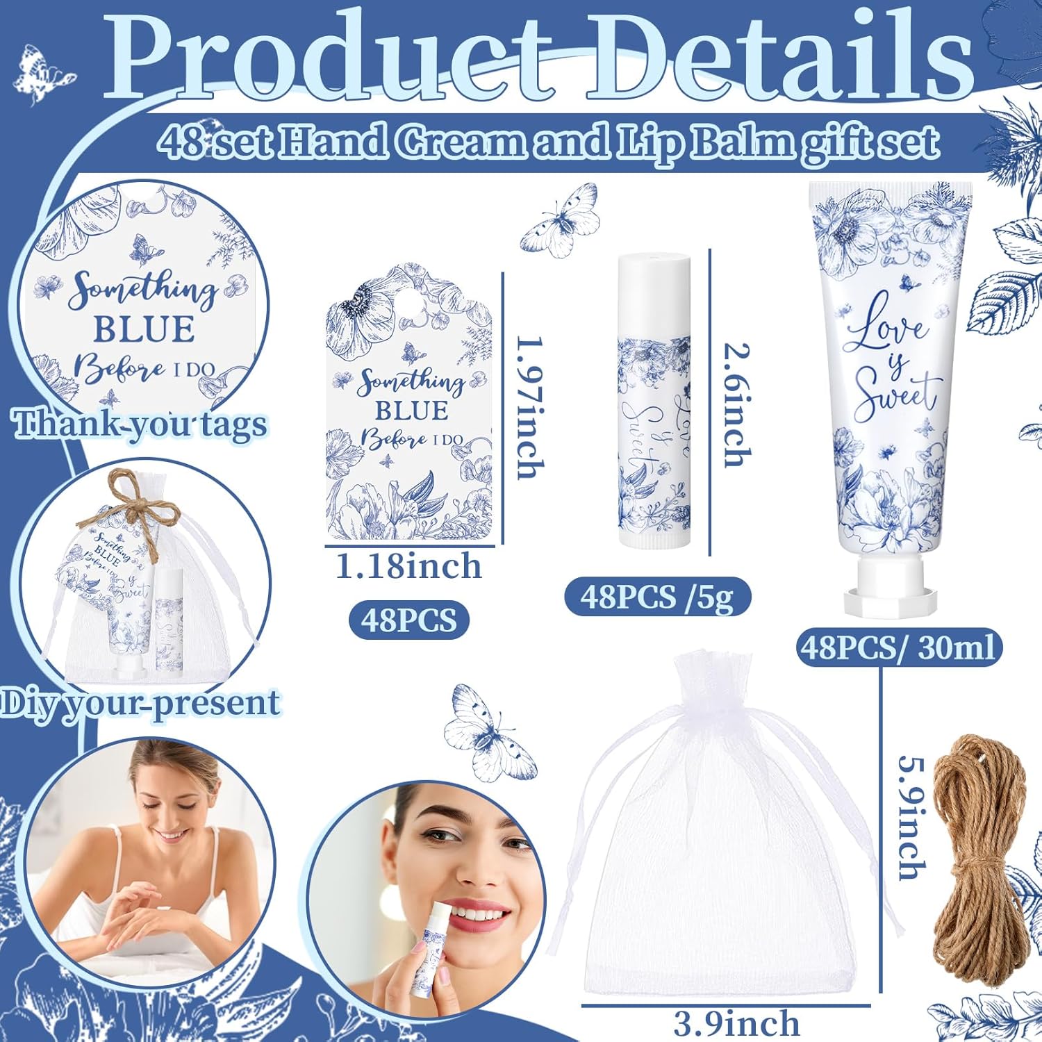 - Elegant Design: each hand cream and lipstick has a blue flower design and ‘something blue before I do’ words, creating a pleasant feeling and enhancing the atmosphere of the party; This charming and lovely gift adds a touch of elegance and unexpected joy to most weddings and engagement parties; This is an ideal souvenir for engagement parties and weddings