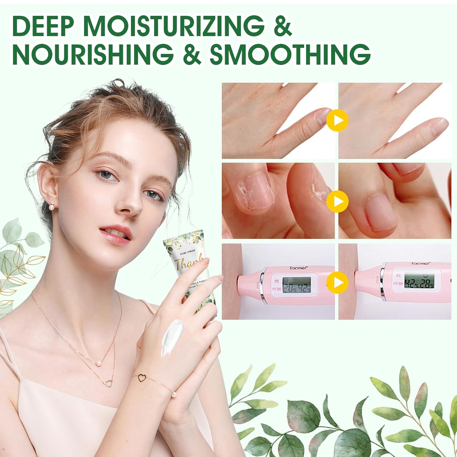 - 【Moisturizing and Smoothing】Enriched with abundant essence,including shea butter and cherry blossom extract,the hand cream is highly effective for dry and cracked hands,regular application keeps your hands smooth and moisturized.They emit a refreshing scent,keeping you in a happy mood
