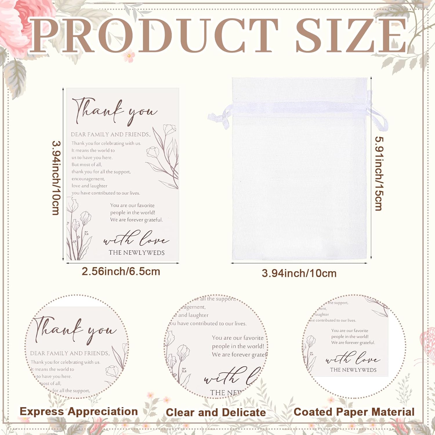 - Ideally Sized: the acrylic shot glasses measure about 1.69 x 1.24 x 2.6 inches/ 4.3 x 3.16 x 6.6 cm and the capacity is 35 ml; The thank you card is about 3.94 x 2.56 inches/ 10 x 6.5 cm, and the organza bag is about 3.94 x 5.91 inches/ 10 x 15 cm