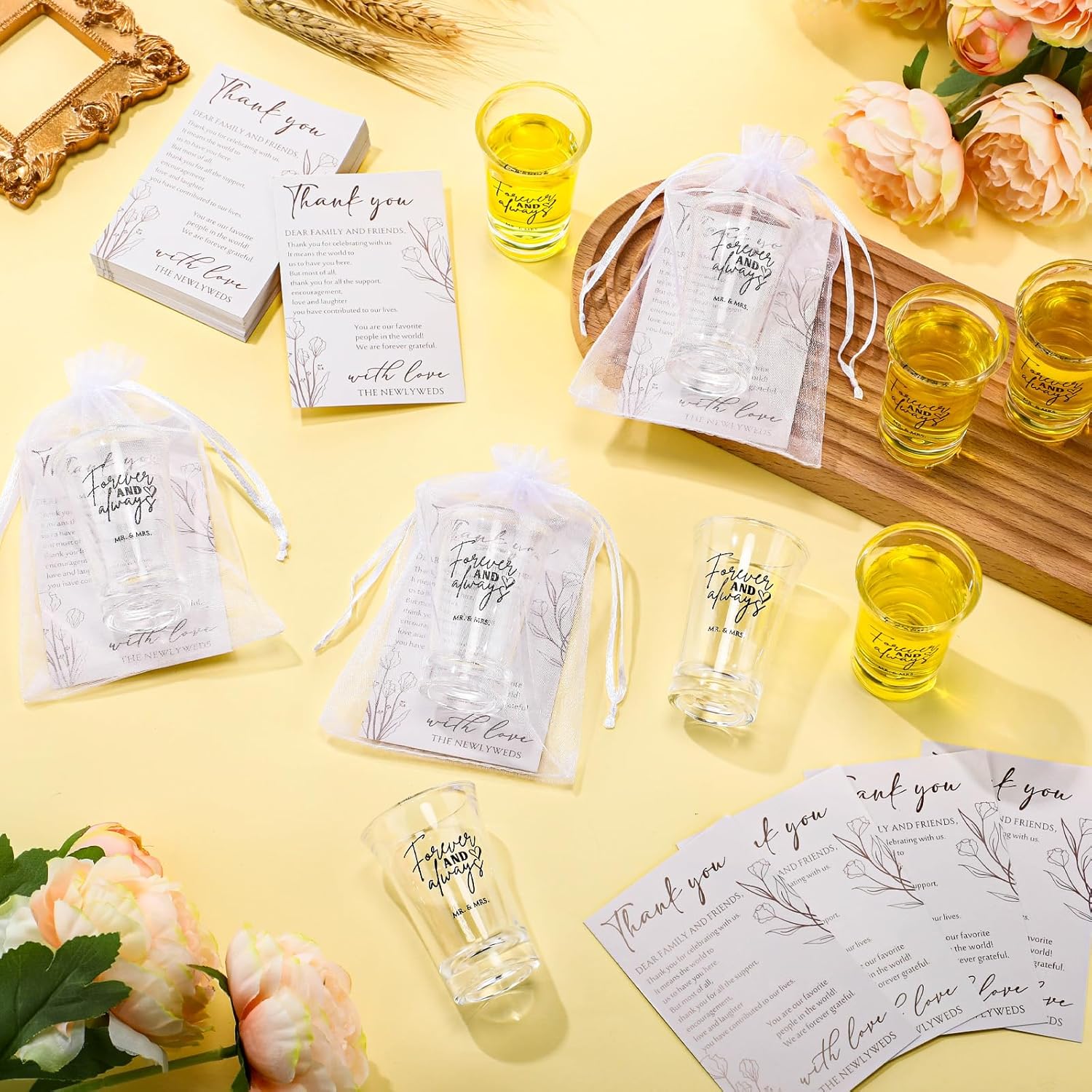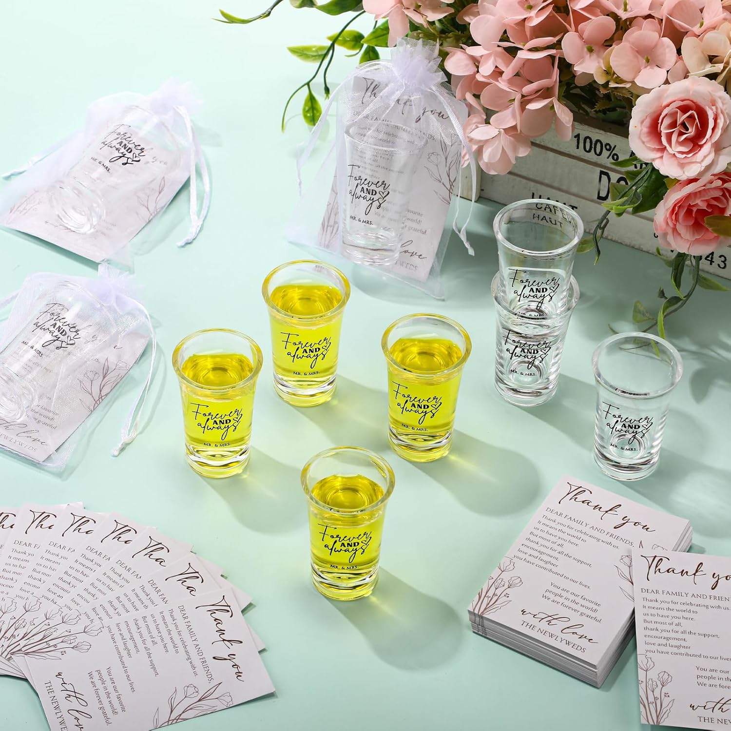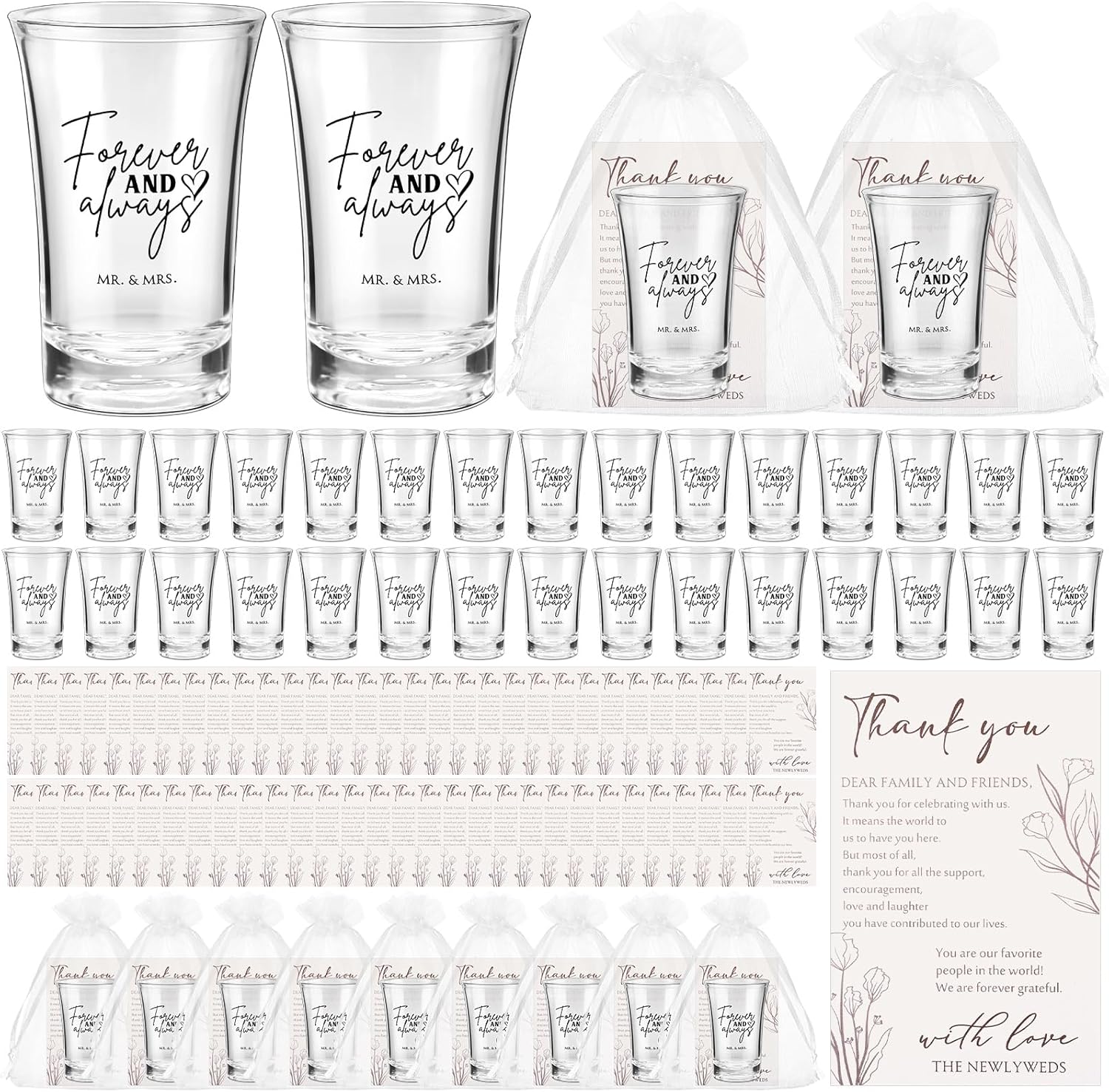 - Designed with Delight and Deep Meanings: these disposable shot glasses are inscribed with the touching words [forever and always], while the simple yet elegant design of the thank-you cards leaves a lasting impression, demonstrating a depth of gratitude and appreciation to your guests.