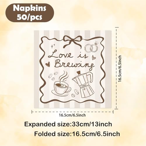 - Package Contents: Includes 50pcs 6.5″ x 6.5″ disposable napkins, featuring “Love is Brewing” lettering with coffee-themed details, ideal for love is brewing bridal shower decorations, engagement parties, or coffee-inspired celebrations