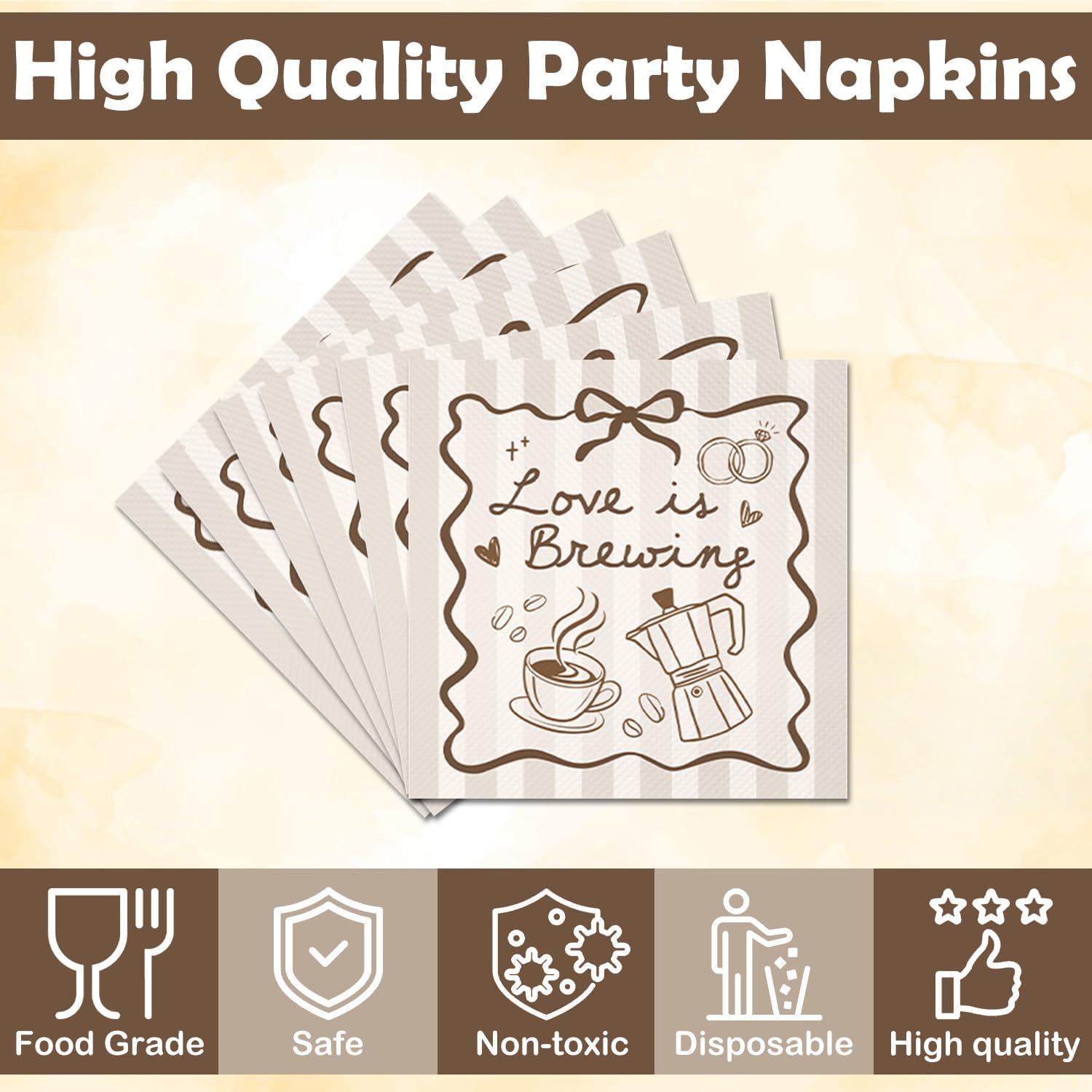 - Wide application: Great love is brewing napkins for bridal showers, bachelorette parties, weddings, engagements, anniversaries, or coffee-themed events, pairing well with love is brewing bridal shower decorations and table decor