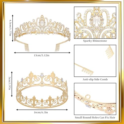 • One size fits all: Each sash measures 31.5inch×3.94inch,it comes with a pin for closing and can adjust the sash according to their exact needs.The men crown adjusts with a slide buckle,the women tiara has a comb for fixing the tiara on your hair.