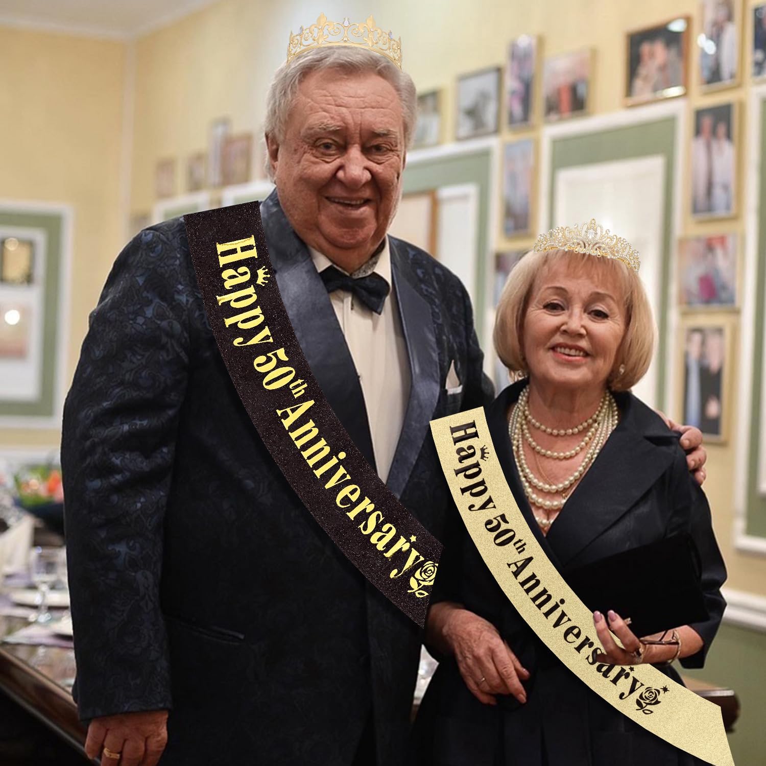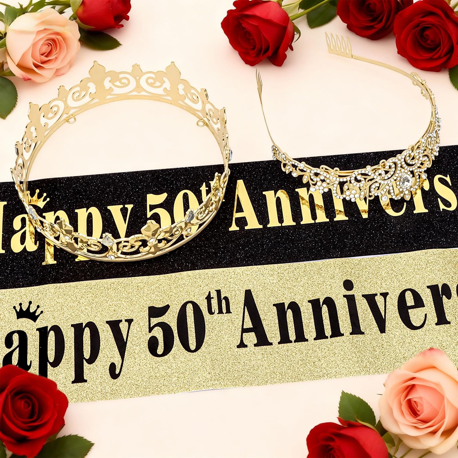 • 50th Anniversary Decorations:This 50th wedding anniversary decorations set includes exclusive sash and gold crown, which do not need to be paired separately. It is an excellent photo prop for golden wedding party, easily capturing the warm commemorative moments of couples and friends.