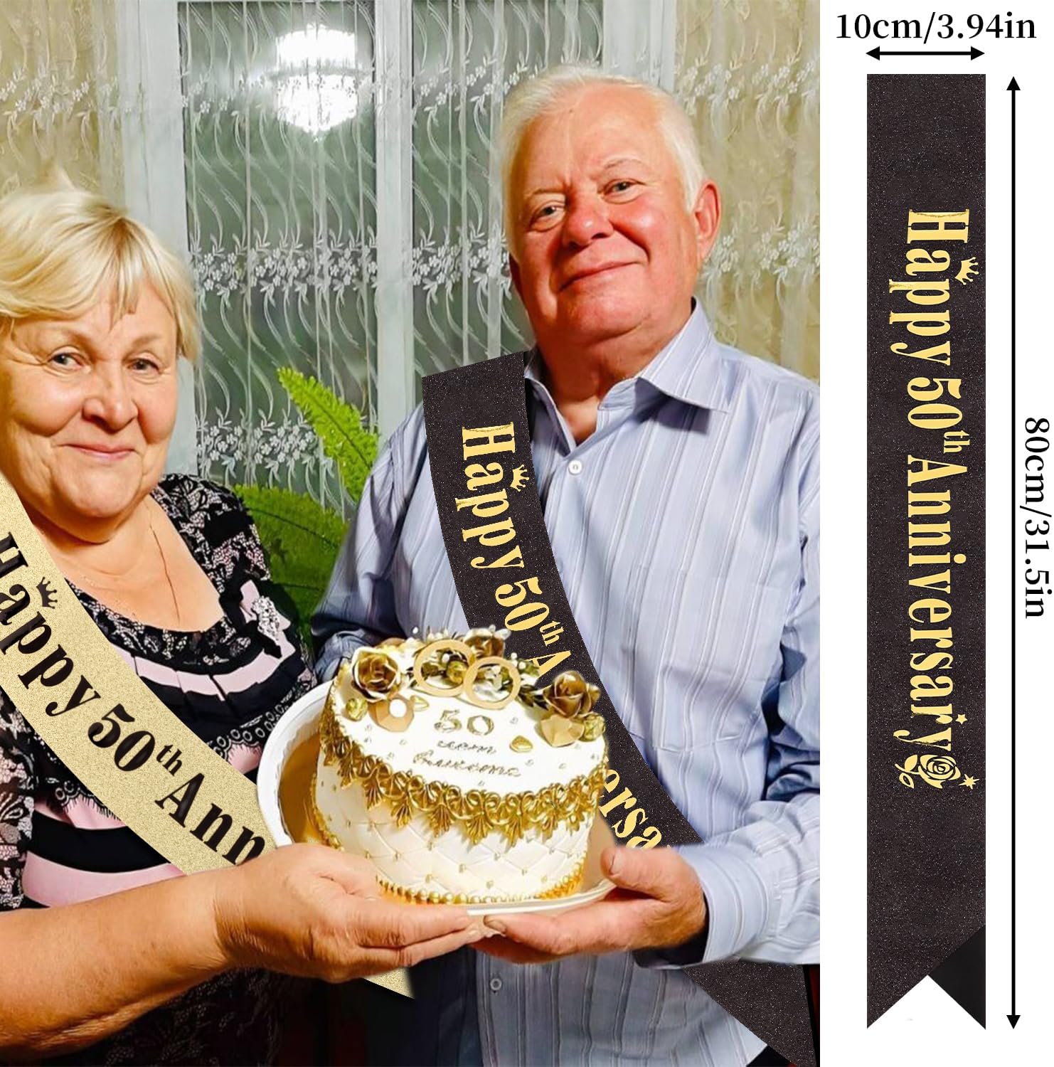 • Happy 50th Anniversary Sash:Celebrate your love story with our anniversary sash. This unique design is not only suitable for 50th anniversary decorations, but also as 50th wedding anniversary gifts for each other to commemorate your journey from first meeting to golden wedding, from youth to old age.