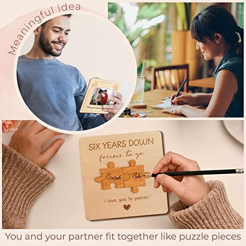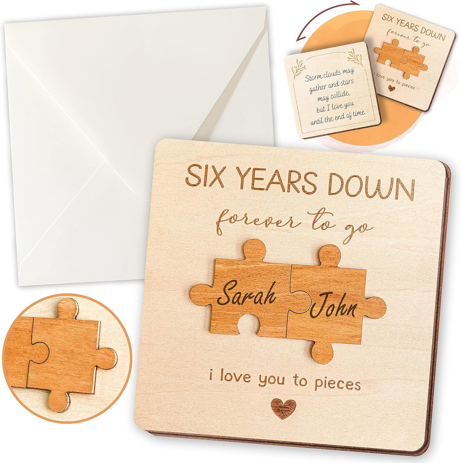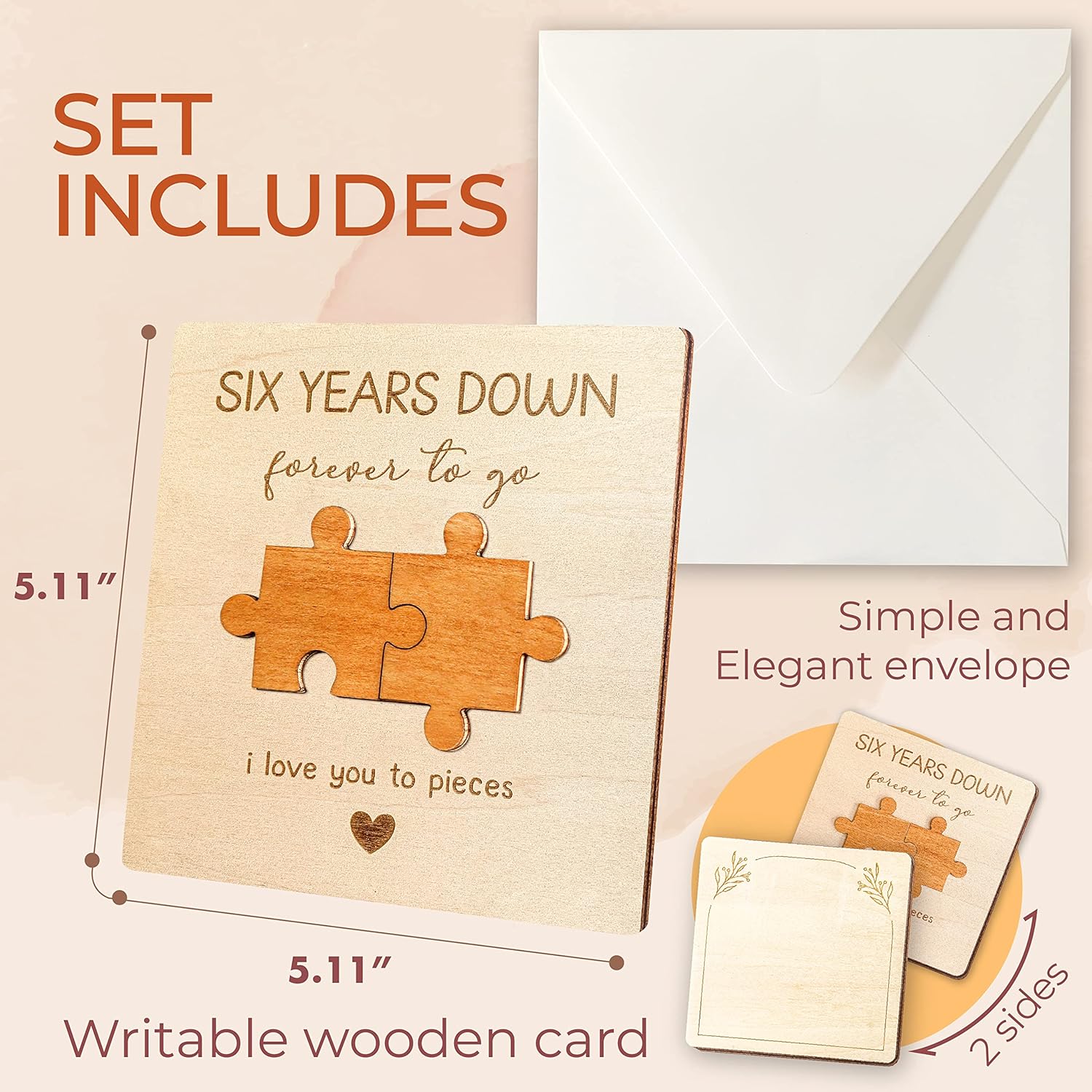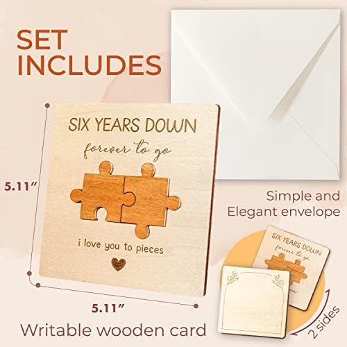 • PREMIUM 6TH ANNIVERSARY CARD: You will receive a sturdy wooden card (5.11”x5.11”) with 2 wooden puzzles on top to write the names on, making this 6 year anniversary gifts for him more romantic. A lovely envelope is included for an elegant outlook