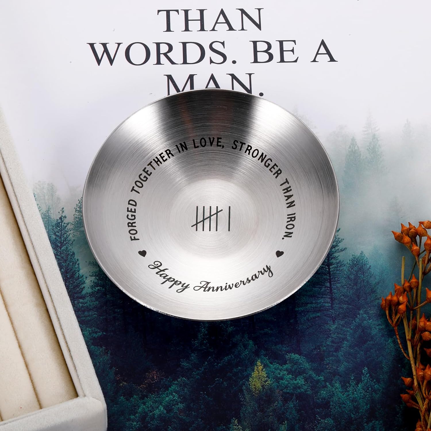 6 Year Anniversary Iron Gifts for Him Her Couples 6th Wedding Gift for Boyfriend Girlfriend Iron Gifts for 6th Anniversary Wedding Couple Gift for Husband Wife 6 Years Ring Holder Jewelry Tray